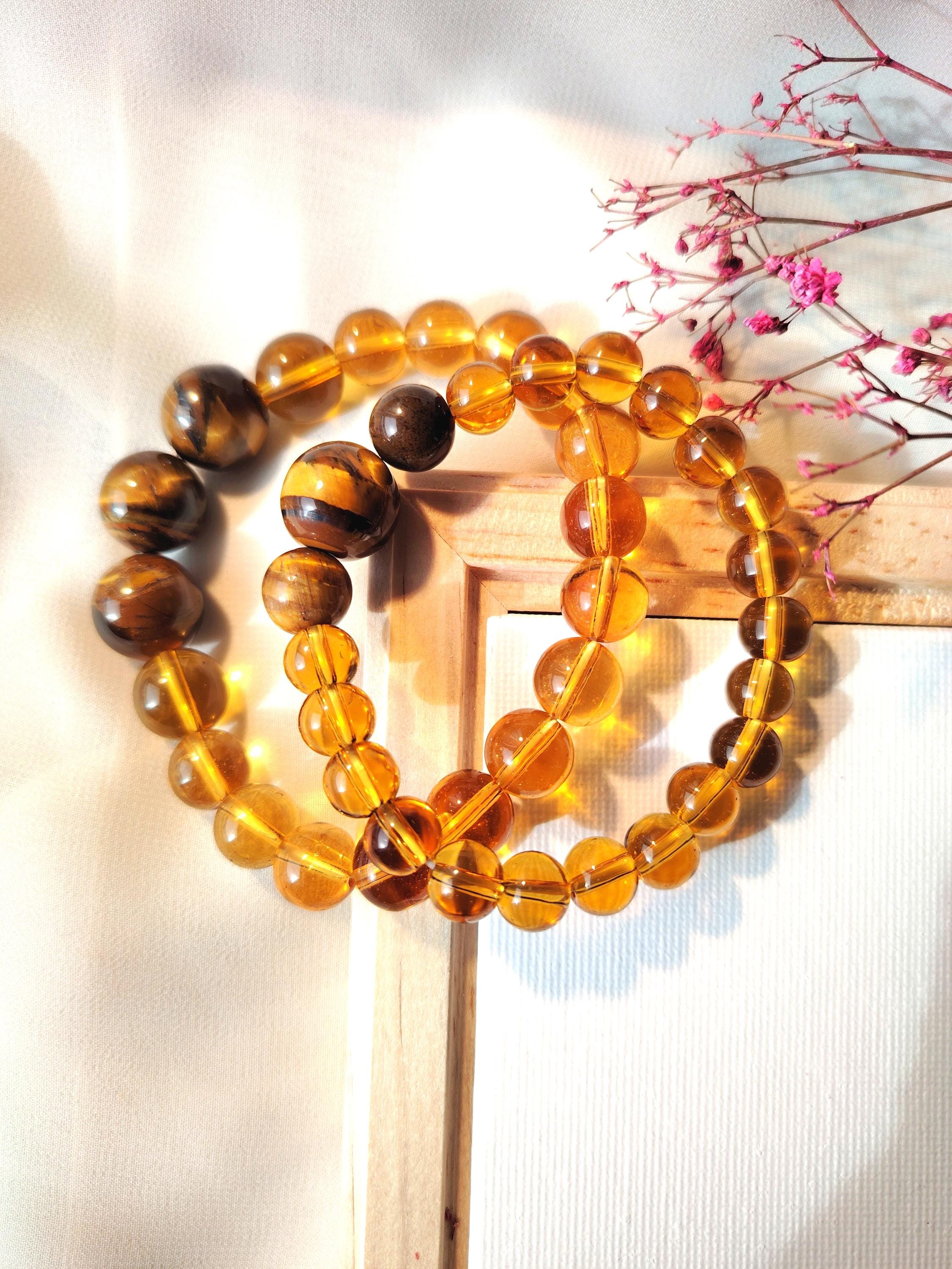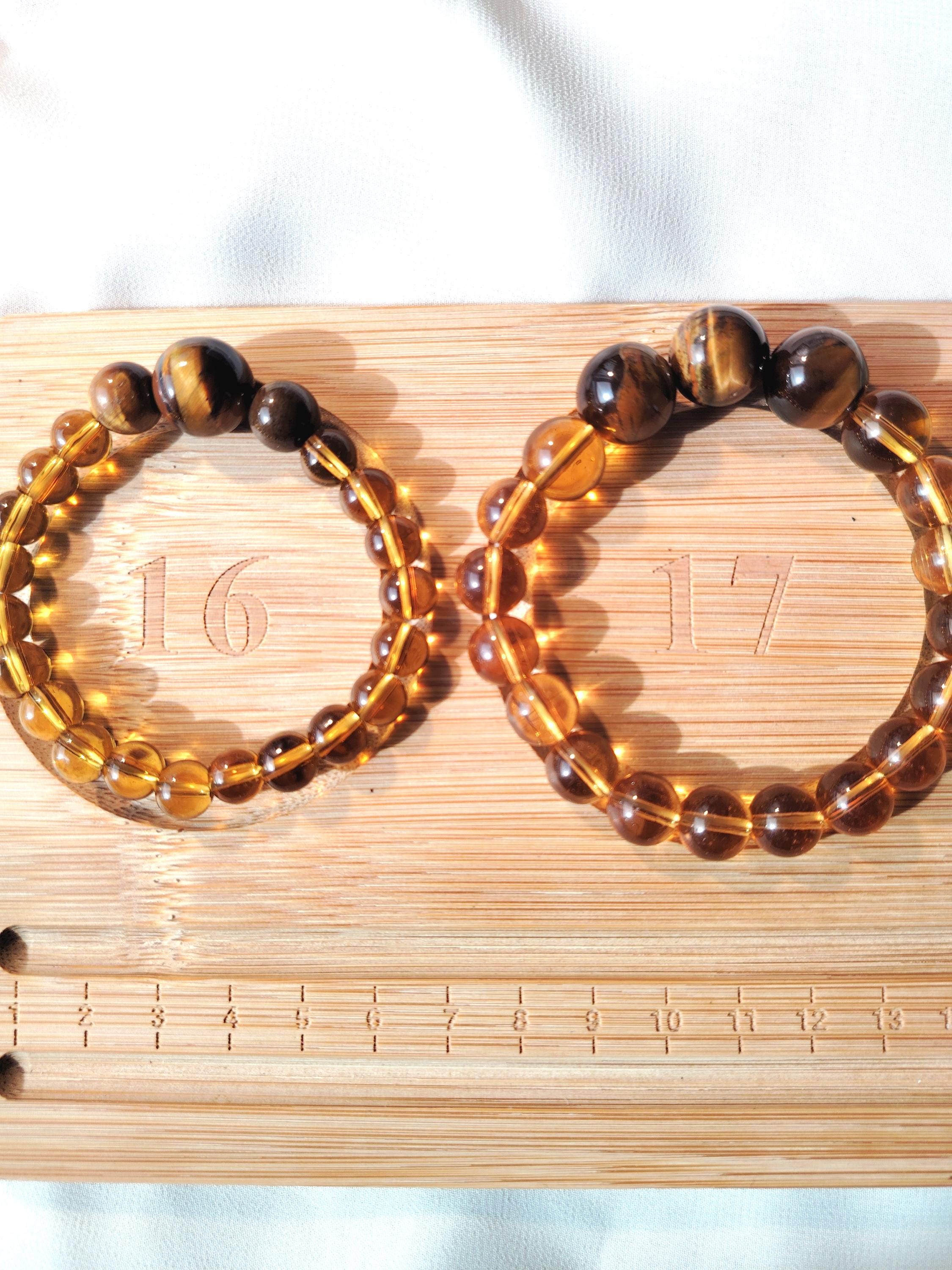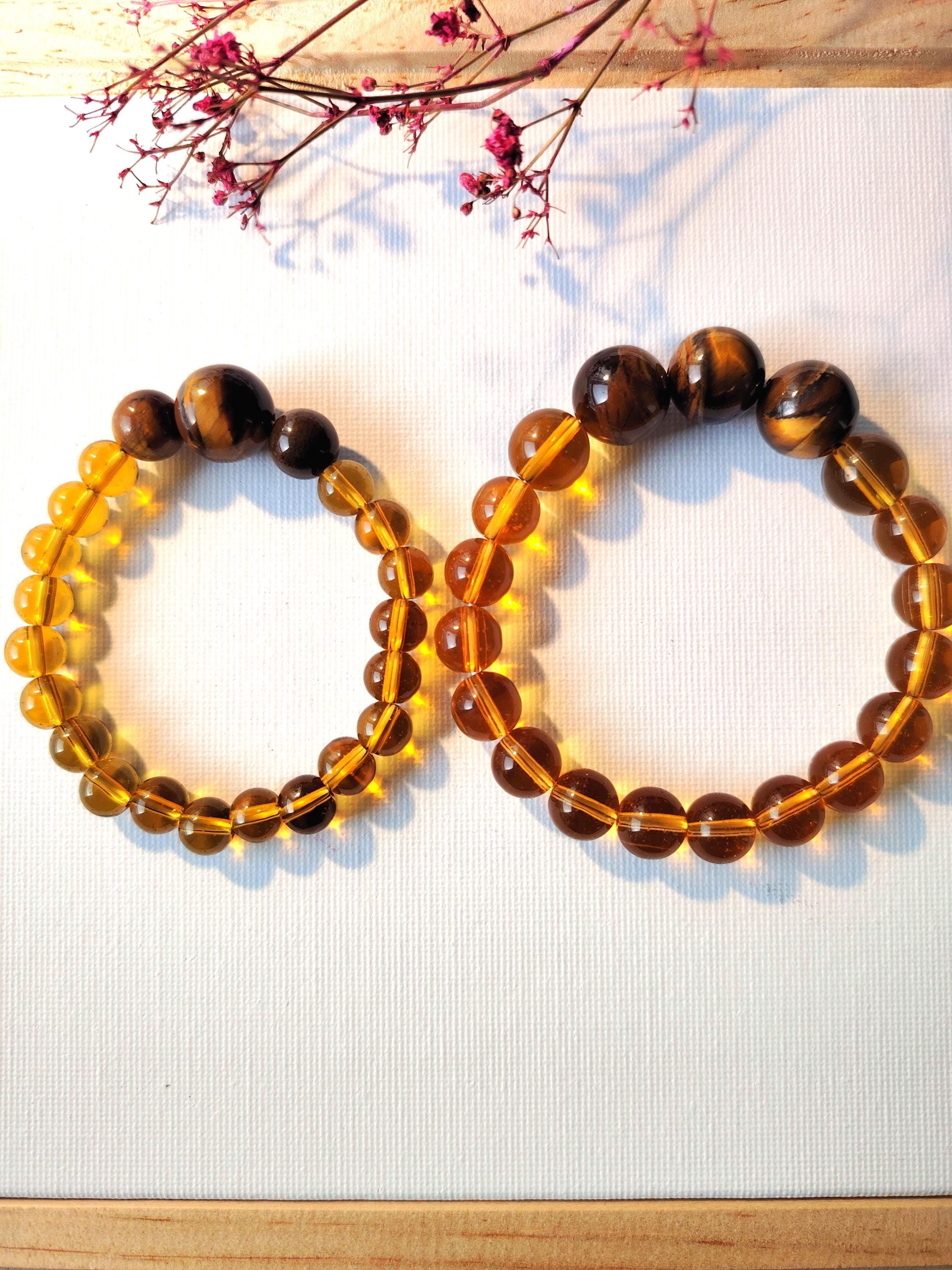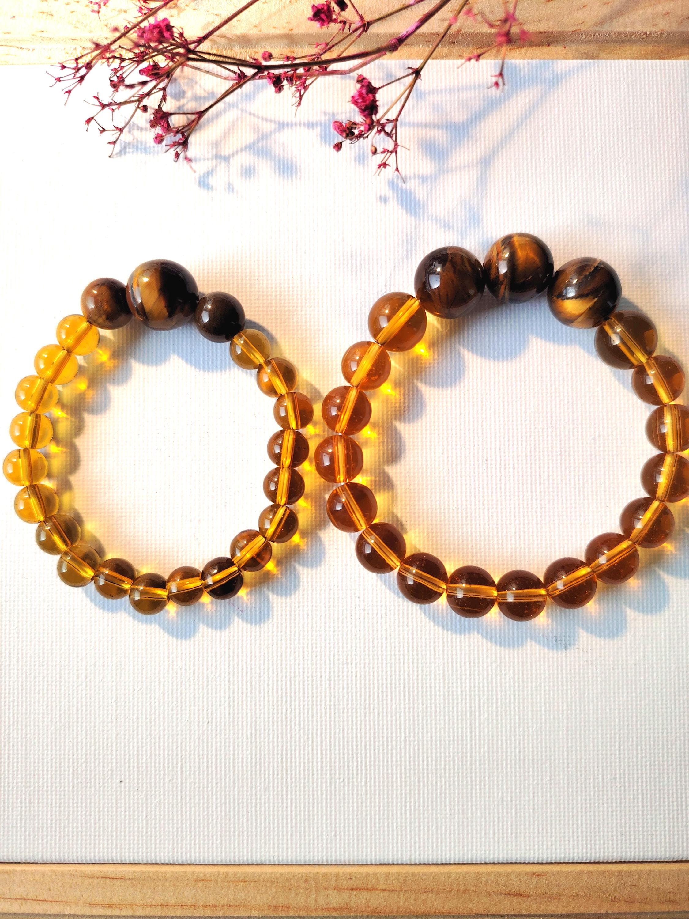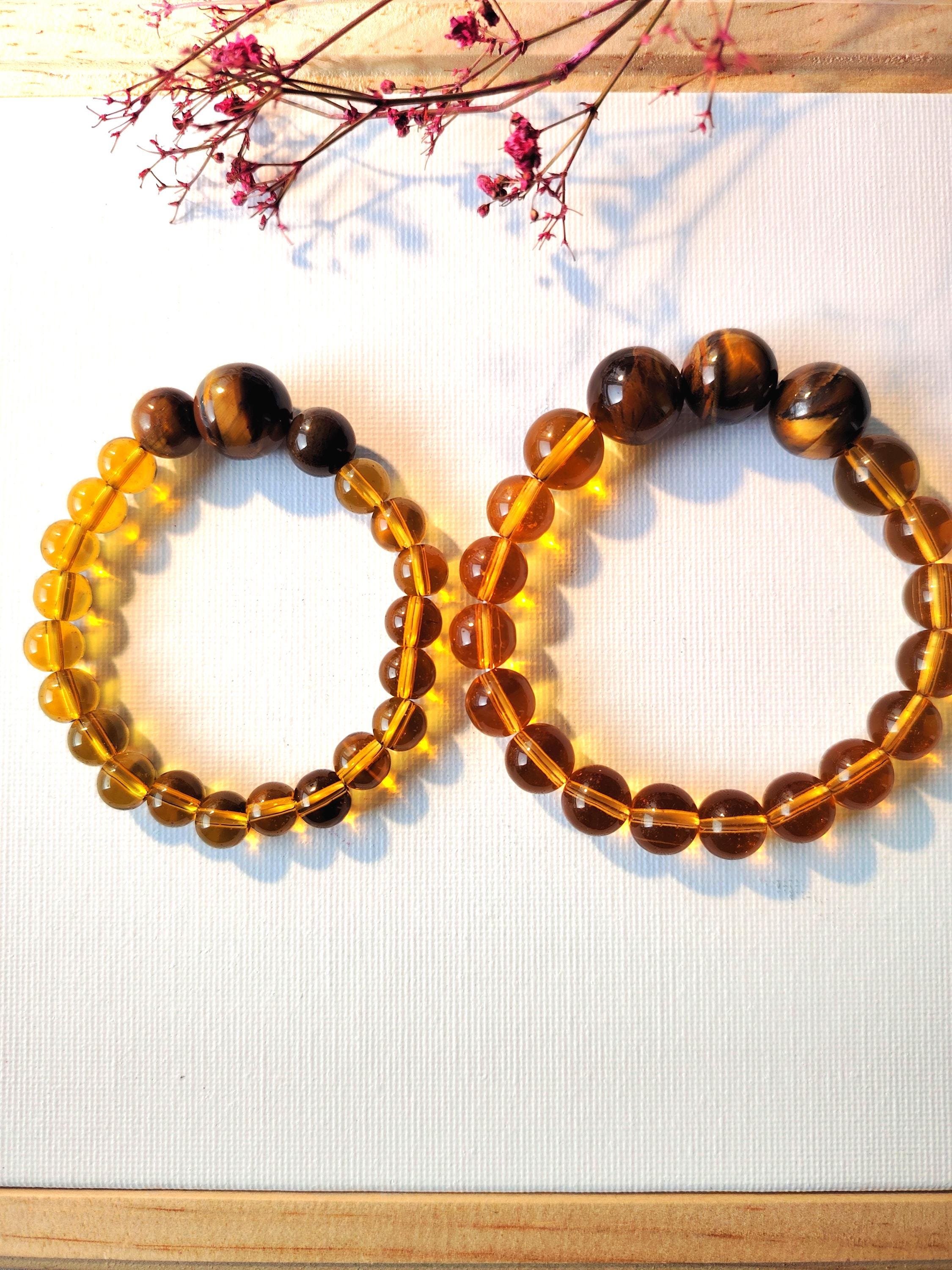 Citrine Tiger's Eye Couple Bracelets | Natural Gemstone Set (10mm-6mm)