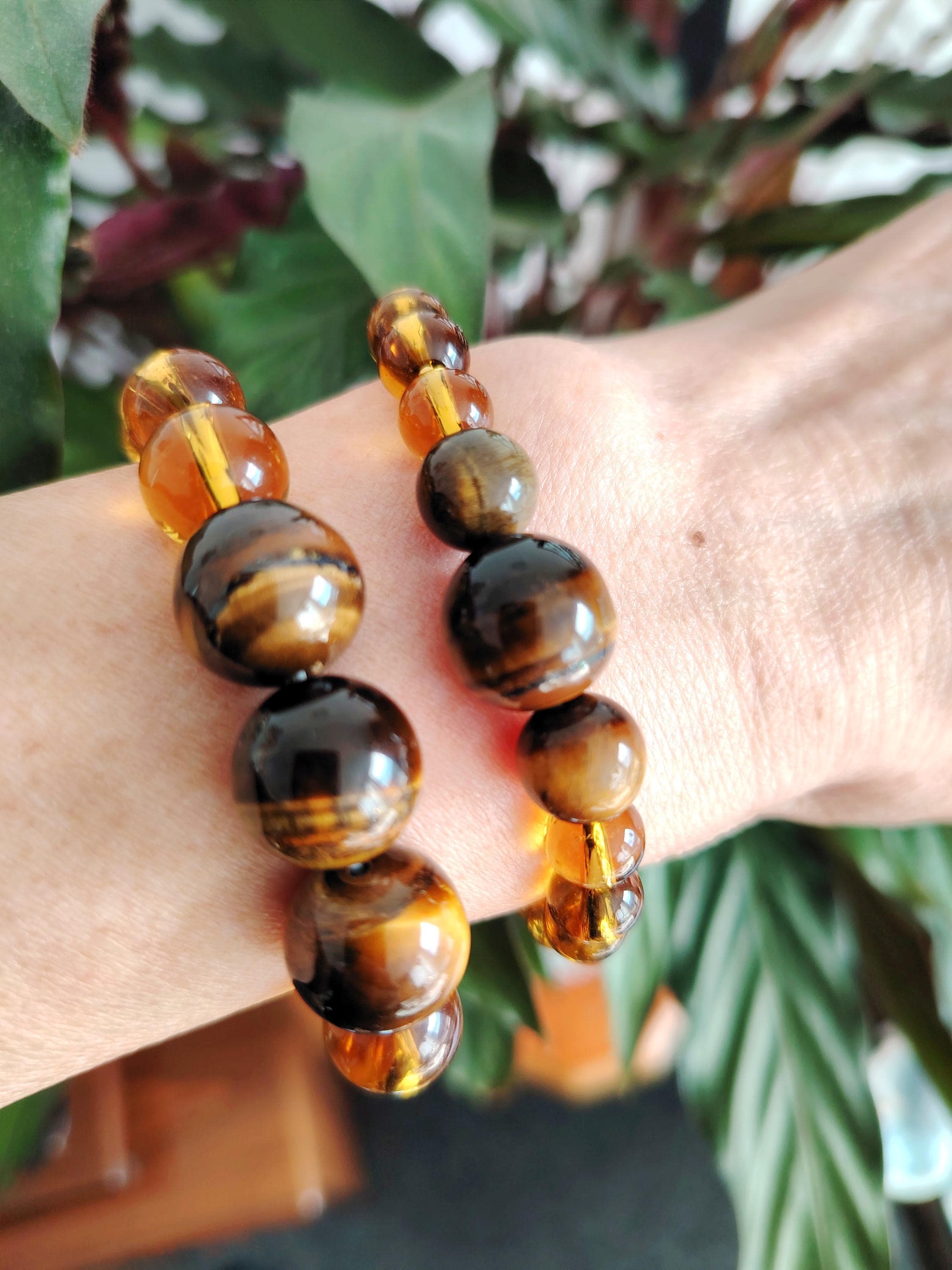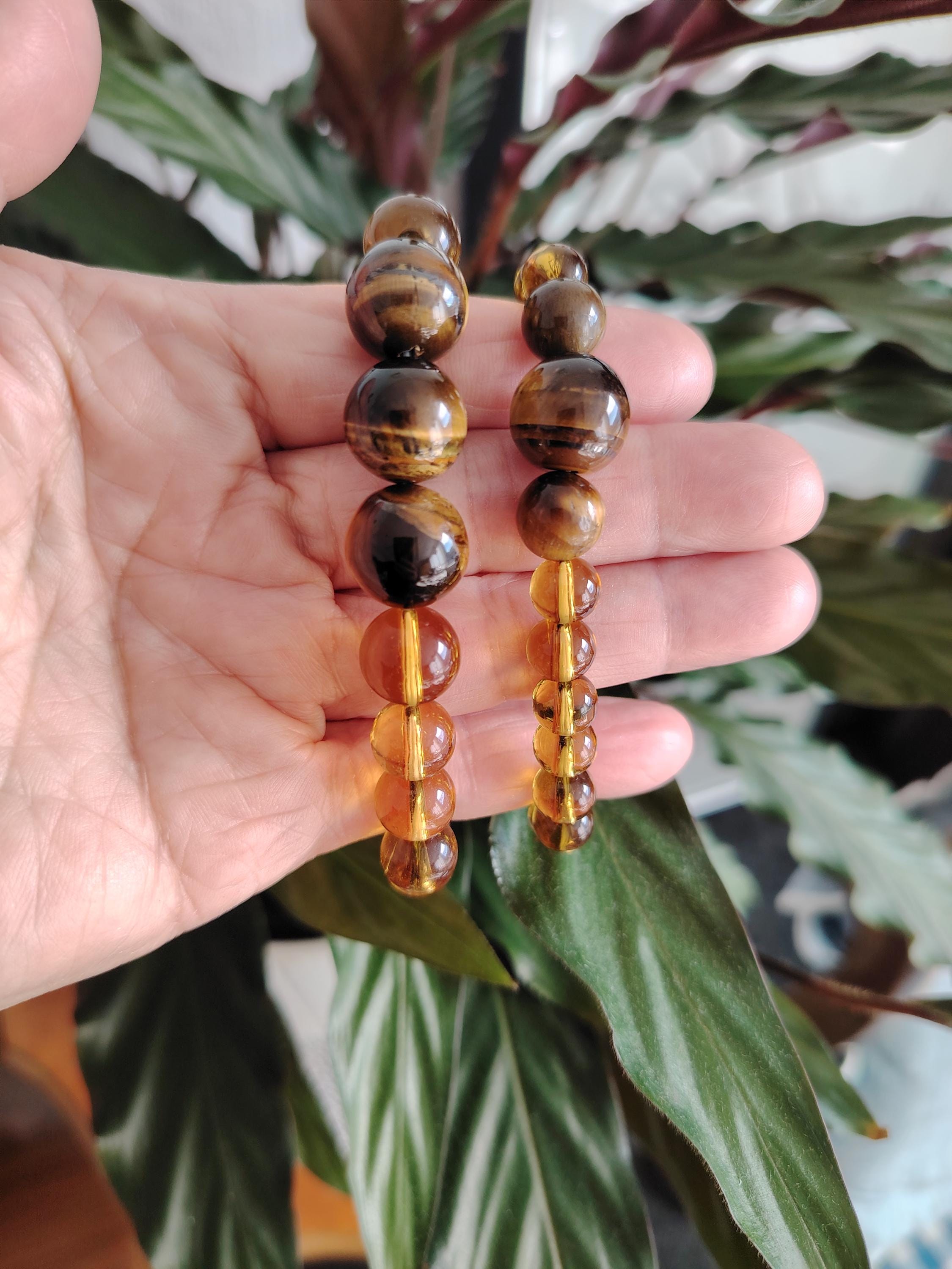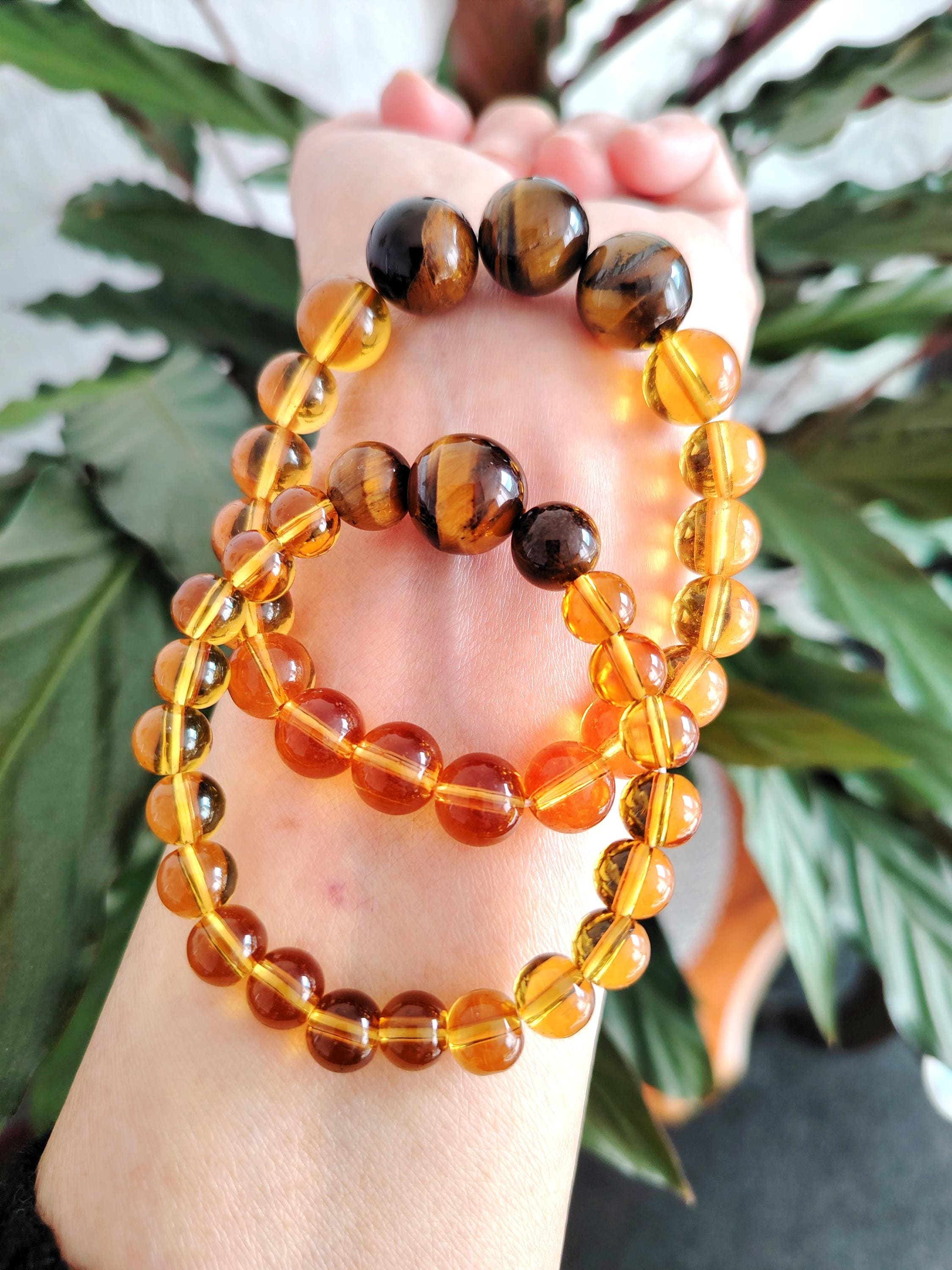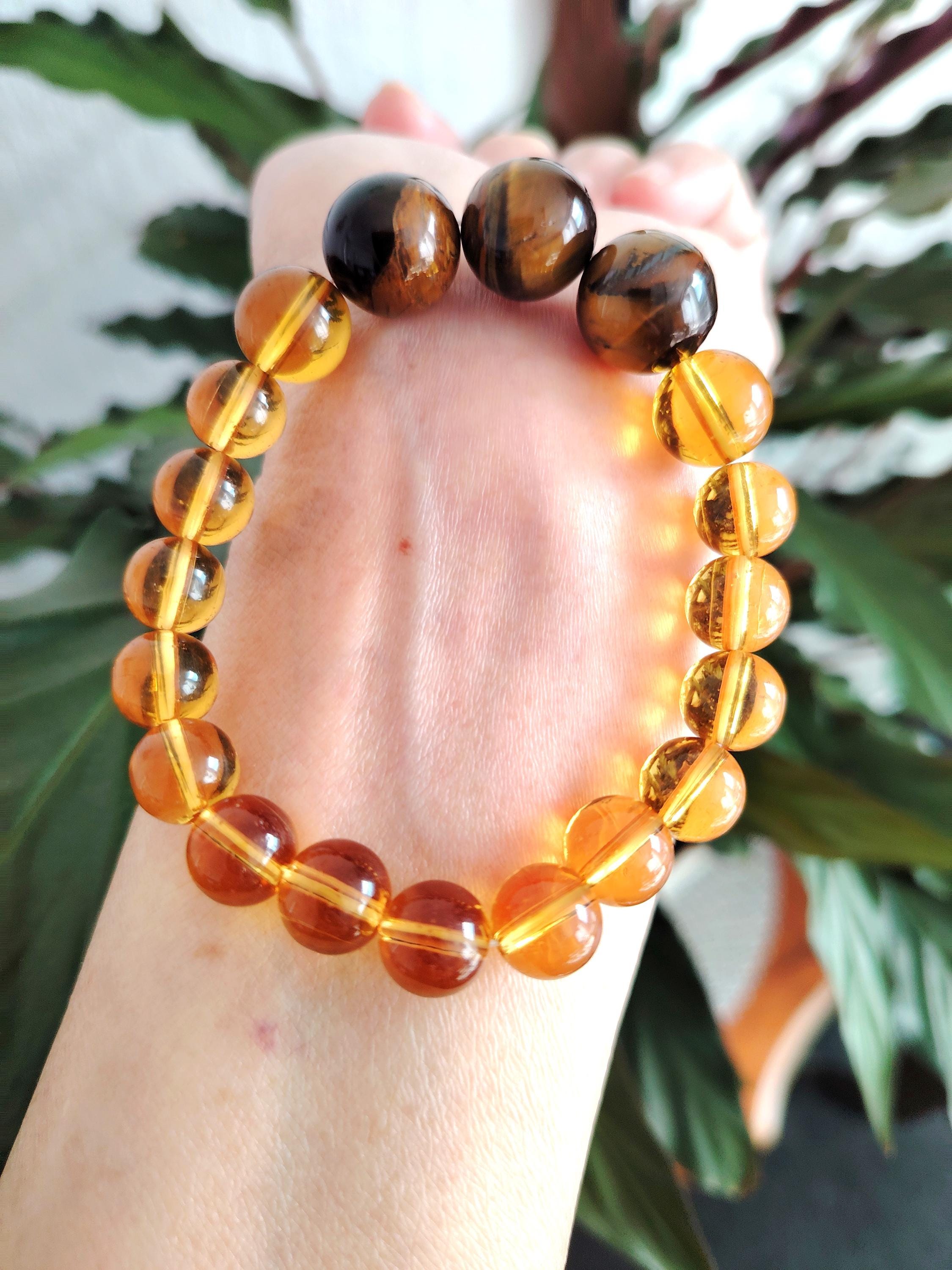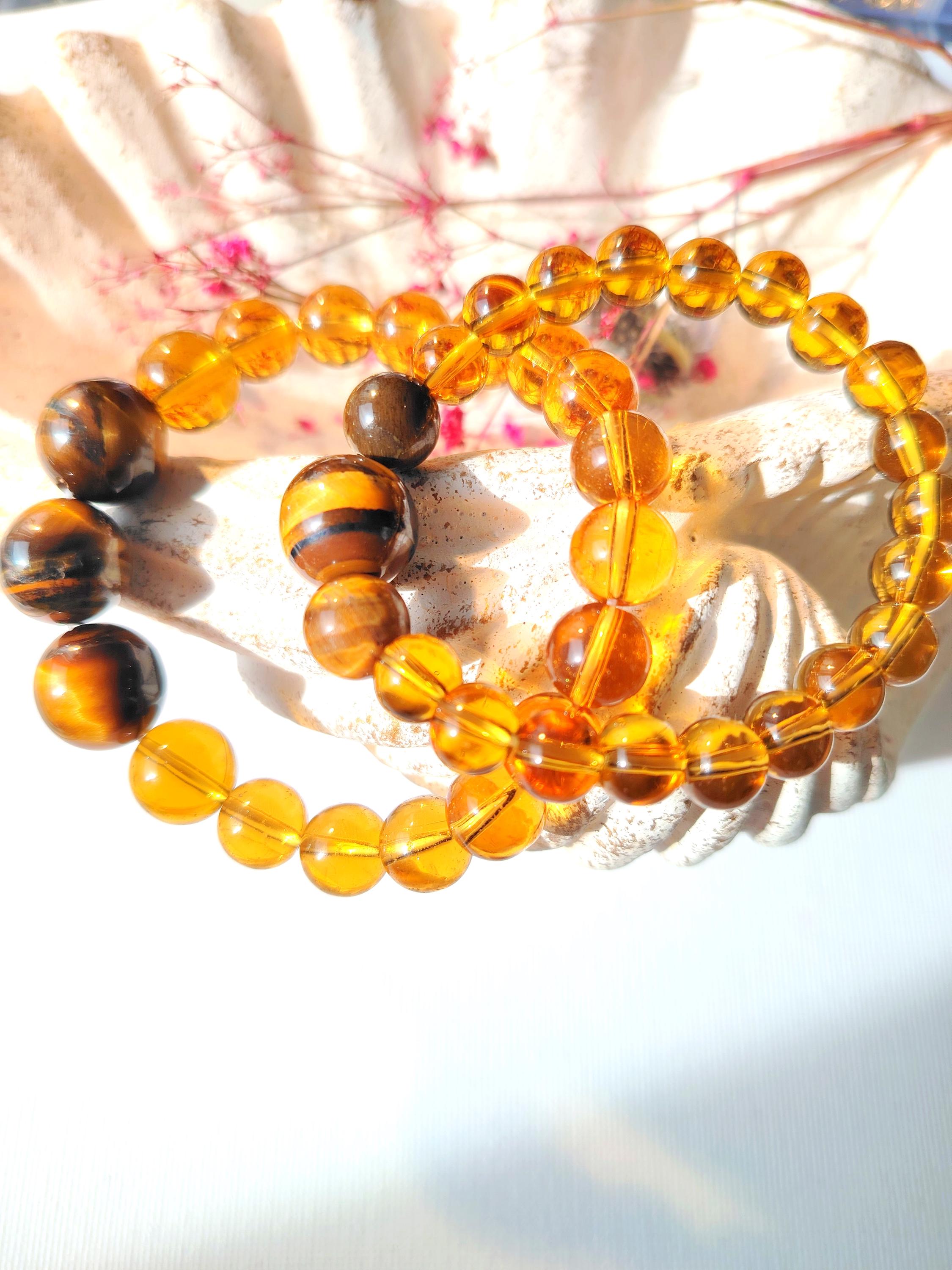 Citrine Tiger's Eye Couple Bracelets | Natural Gemstone Set (10mm-6mm)