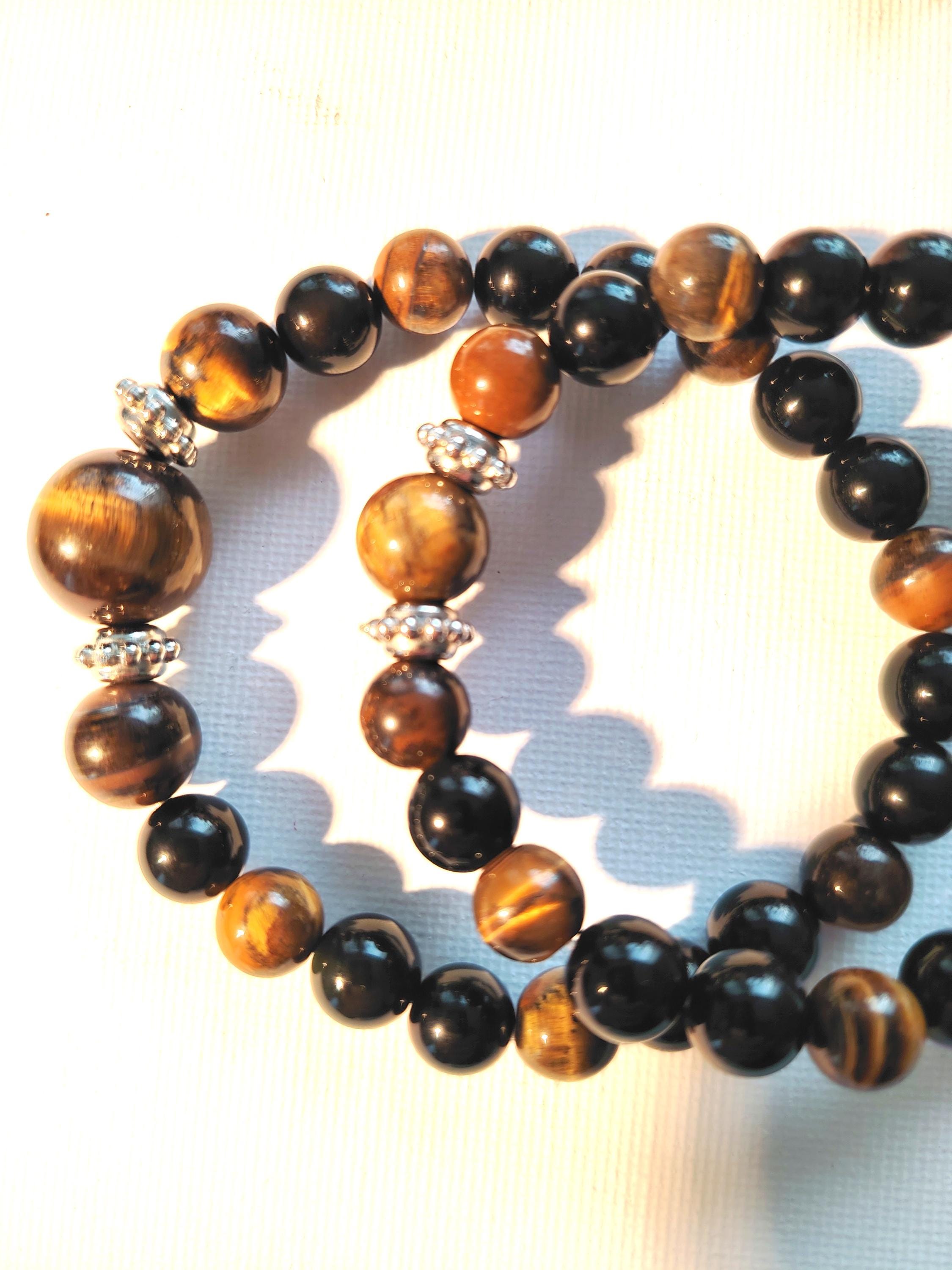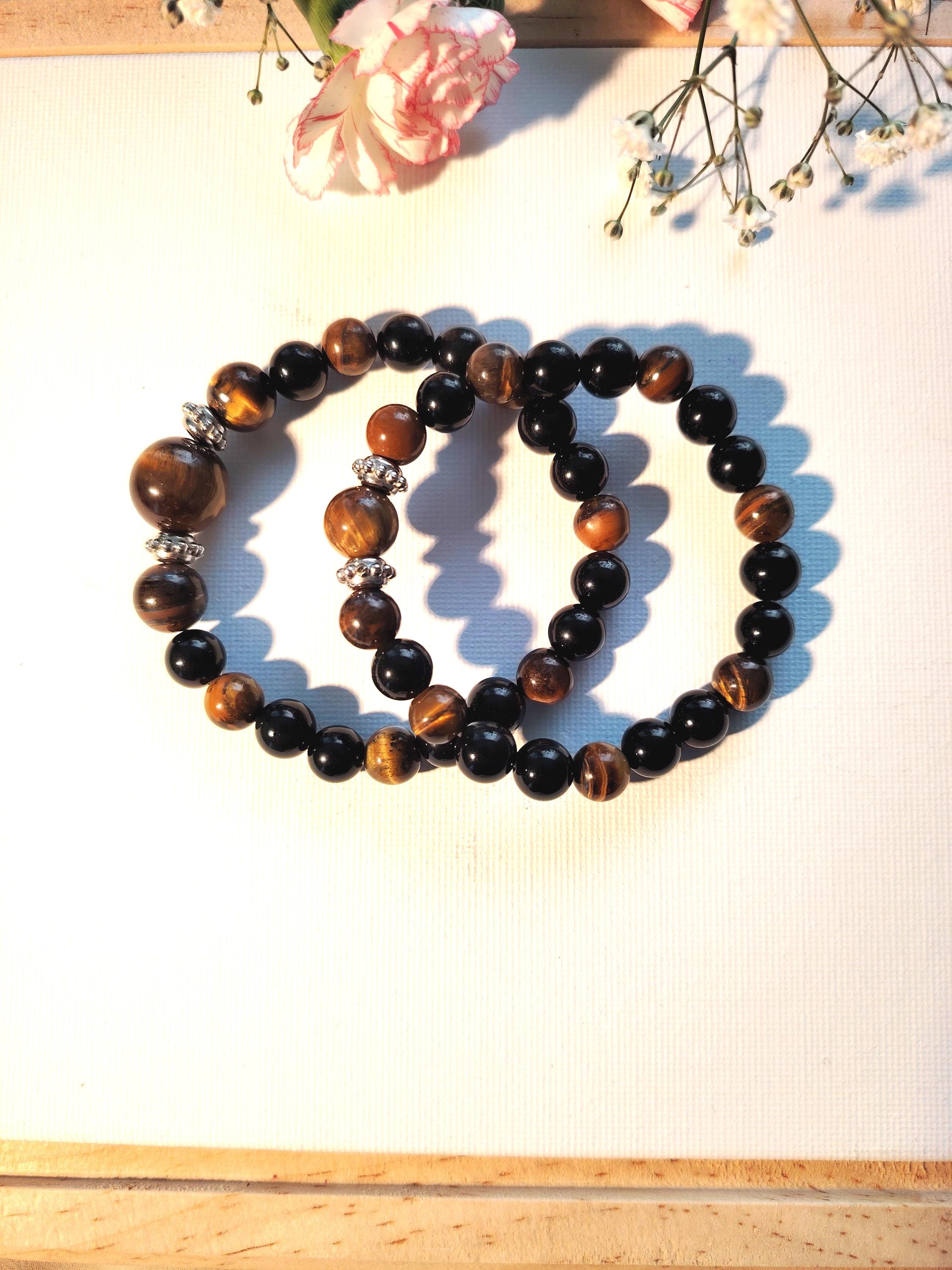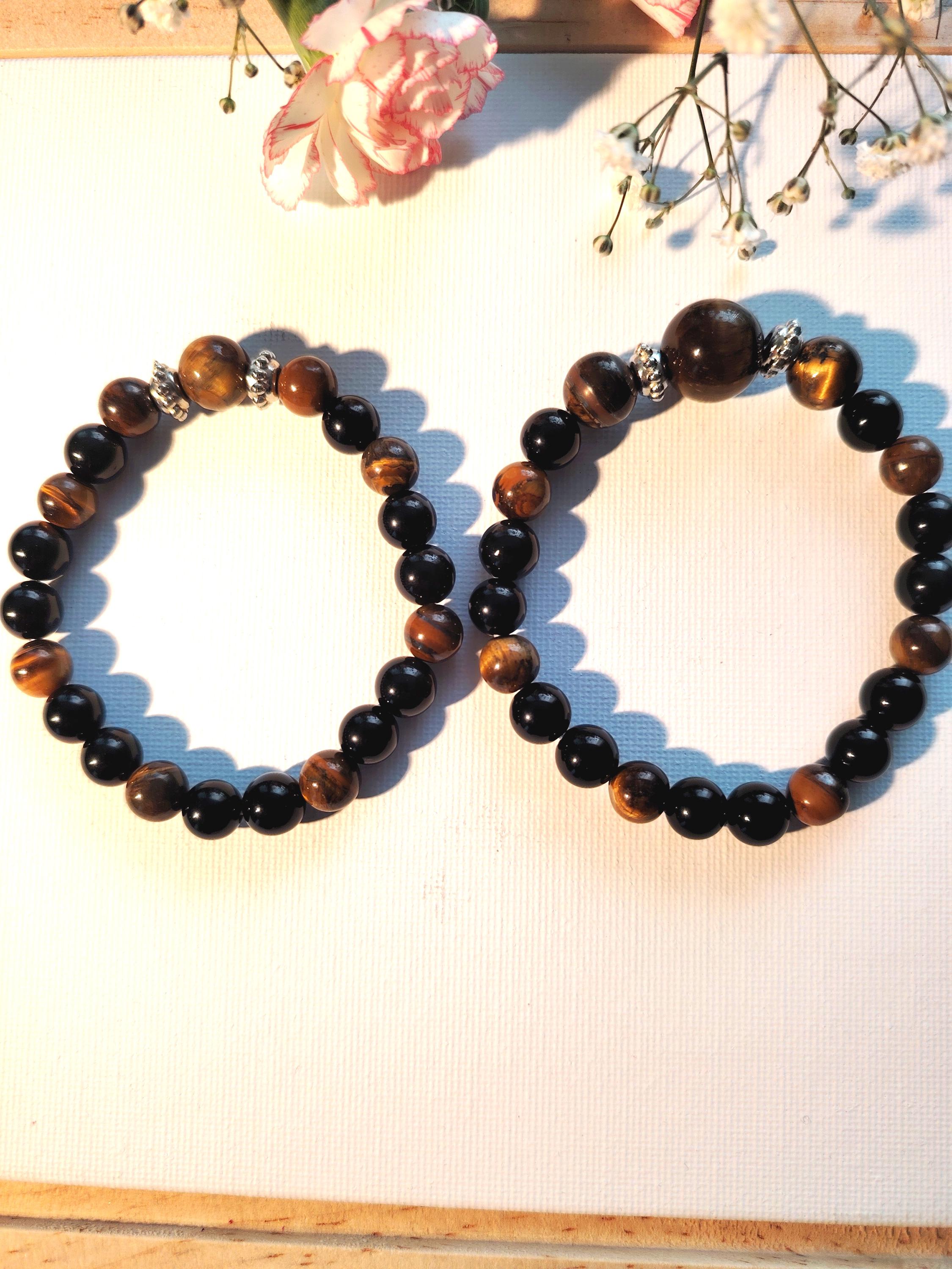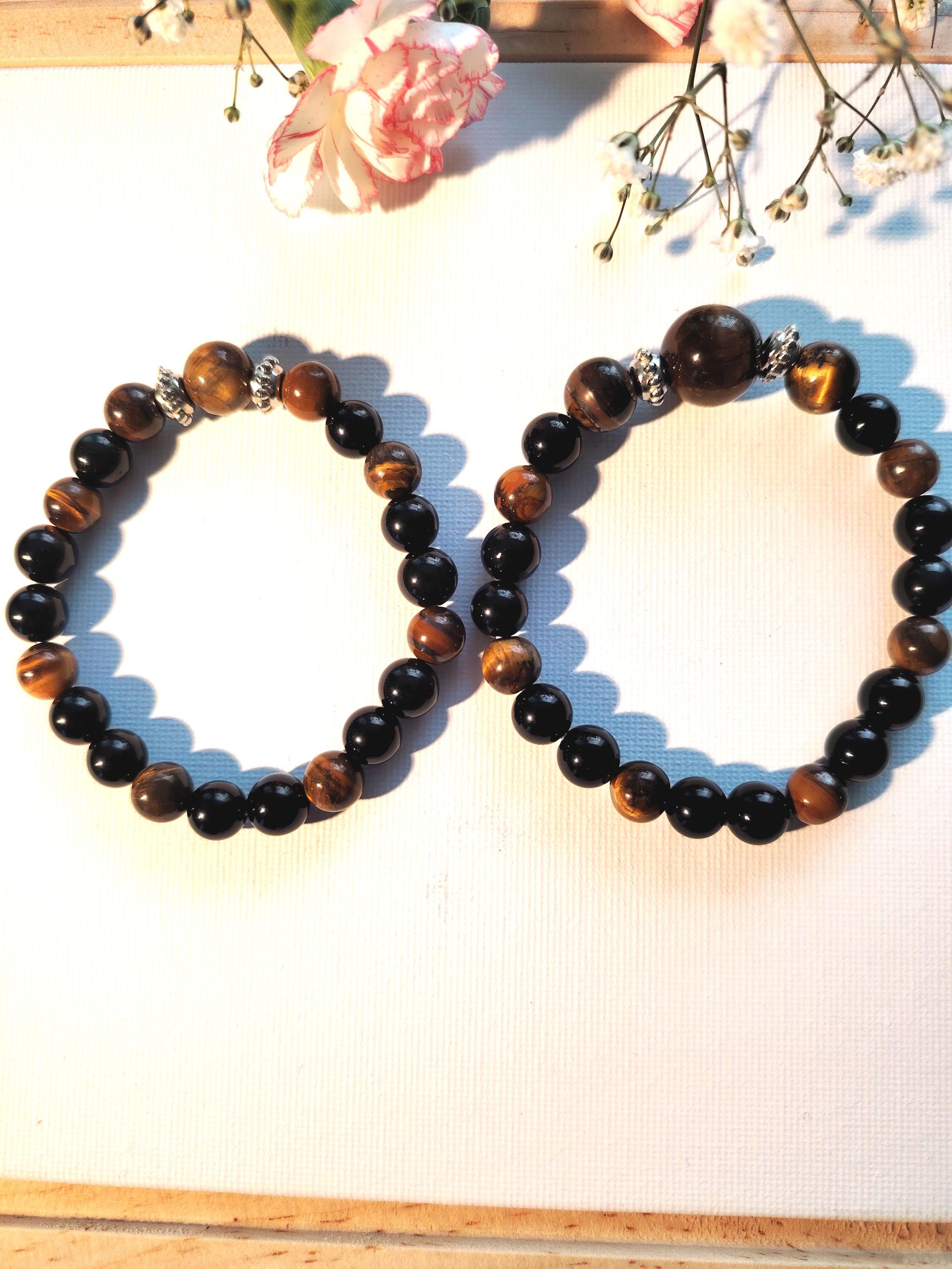 Tiger's Eye Black Agate Couple Bracelets | Natural Stone Matching Beaded Jewelry Set