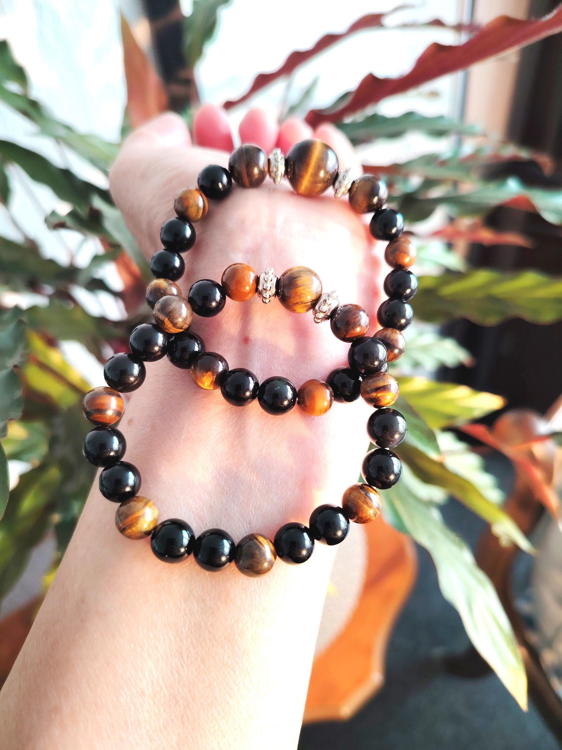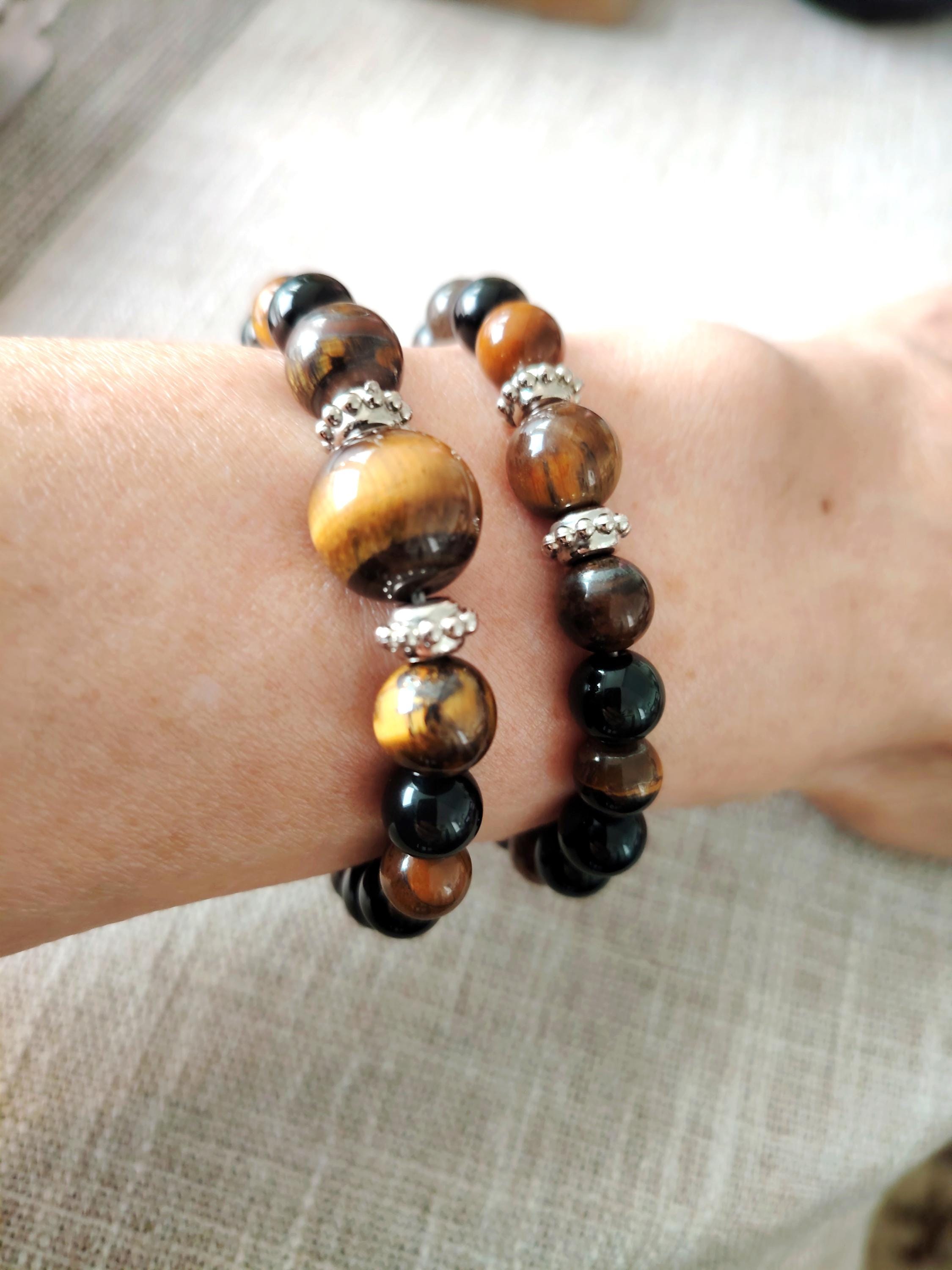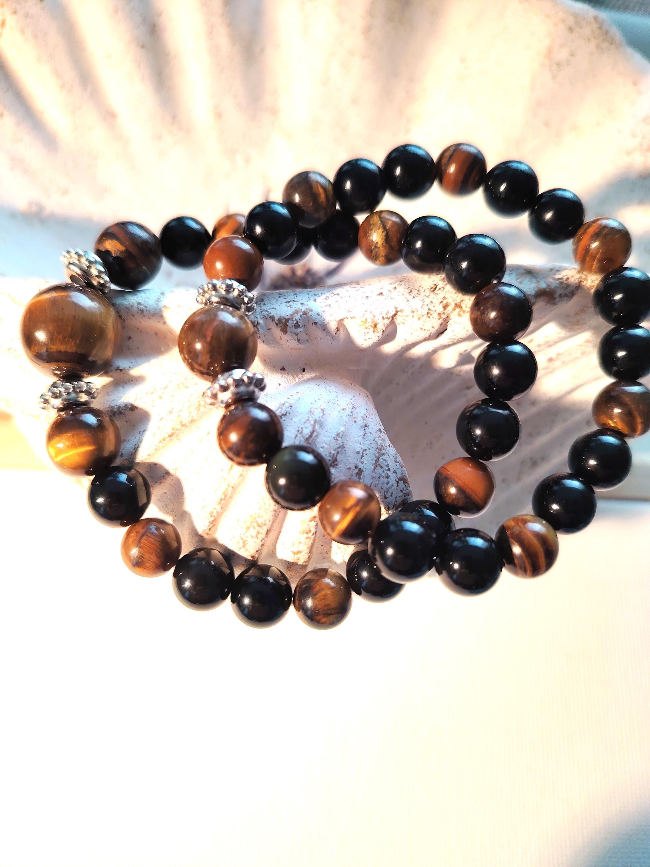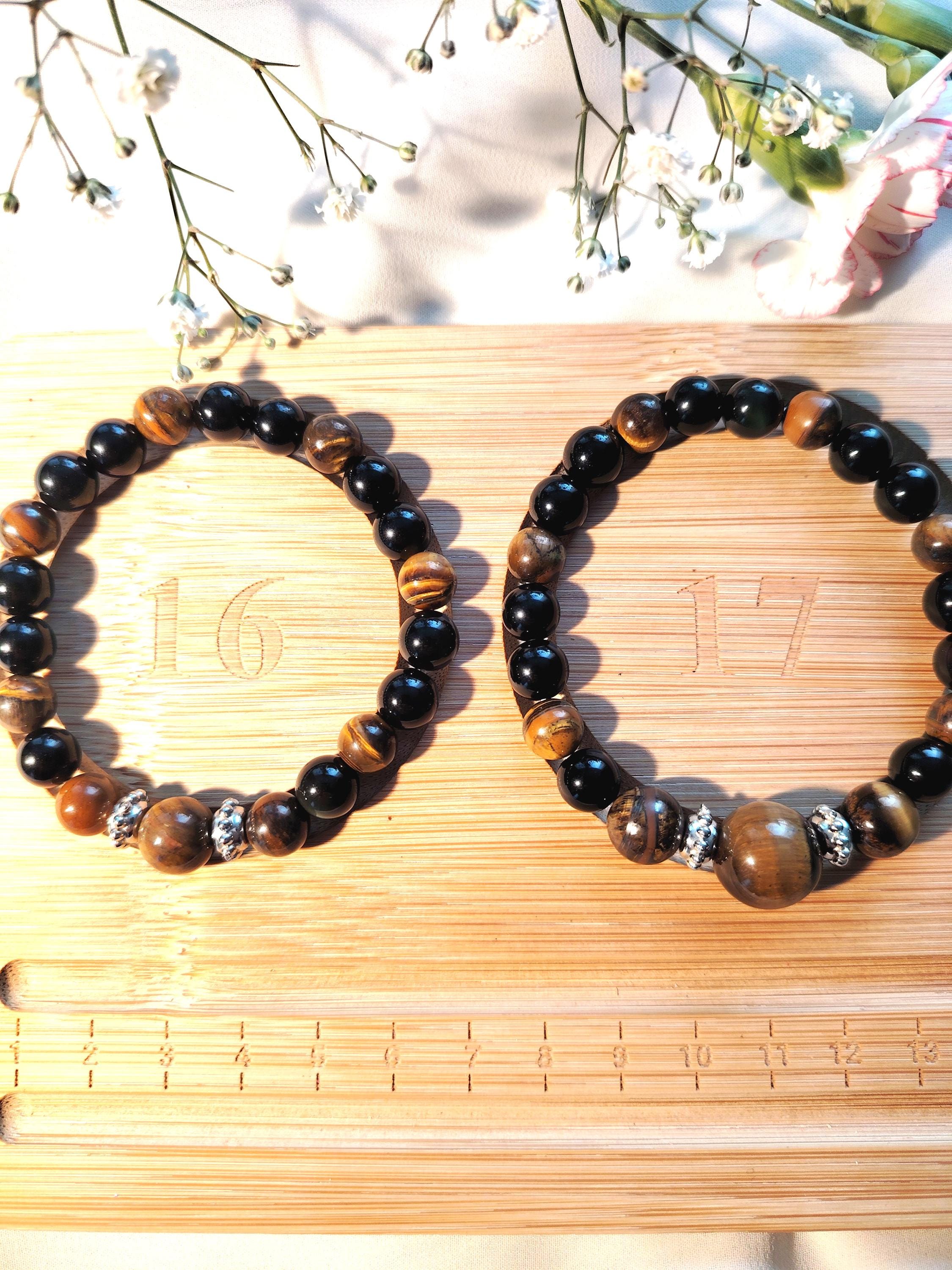 Tiger's Eye Black Agate Couple Bracelets | Natural Stone Matching Beaded Jewelry Set