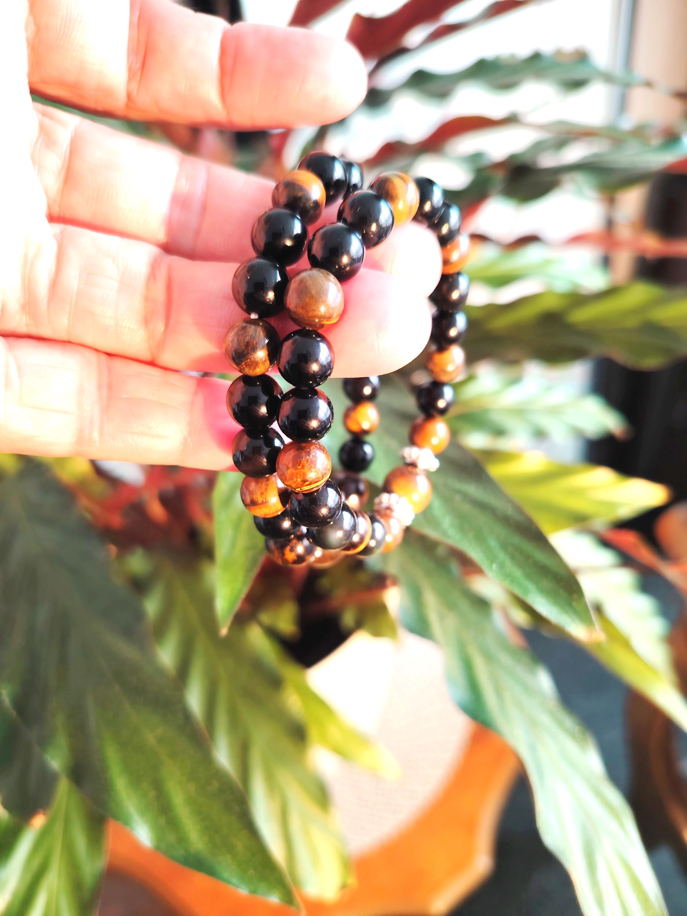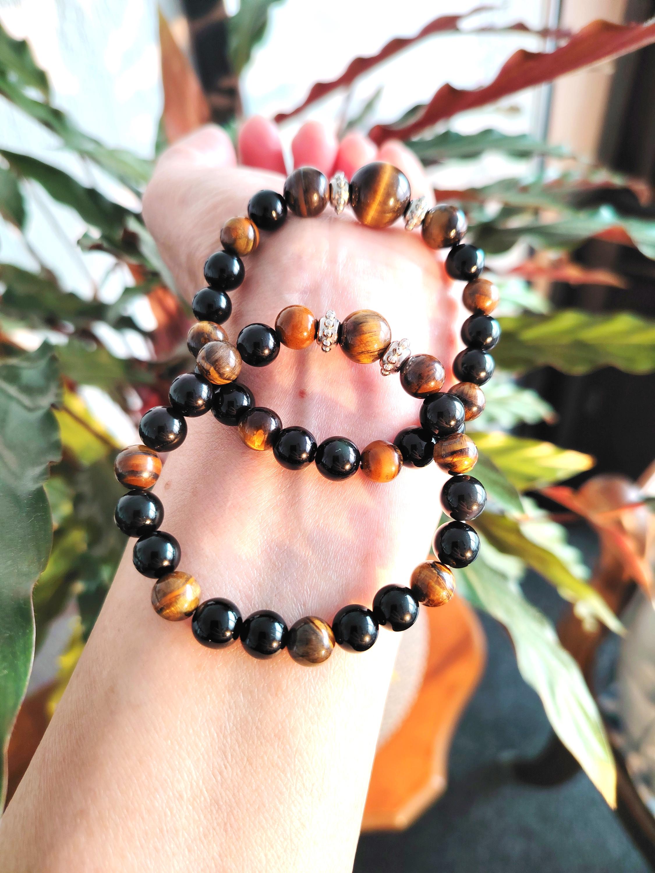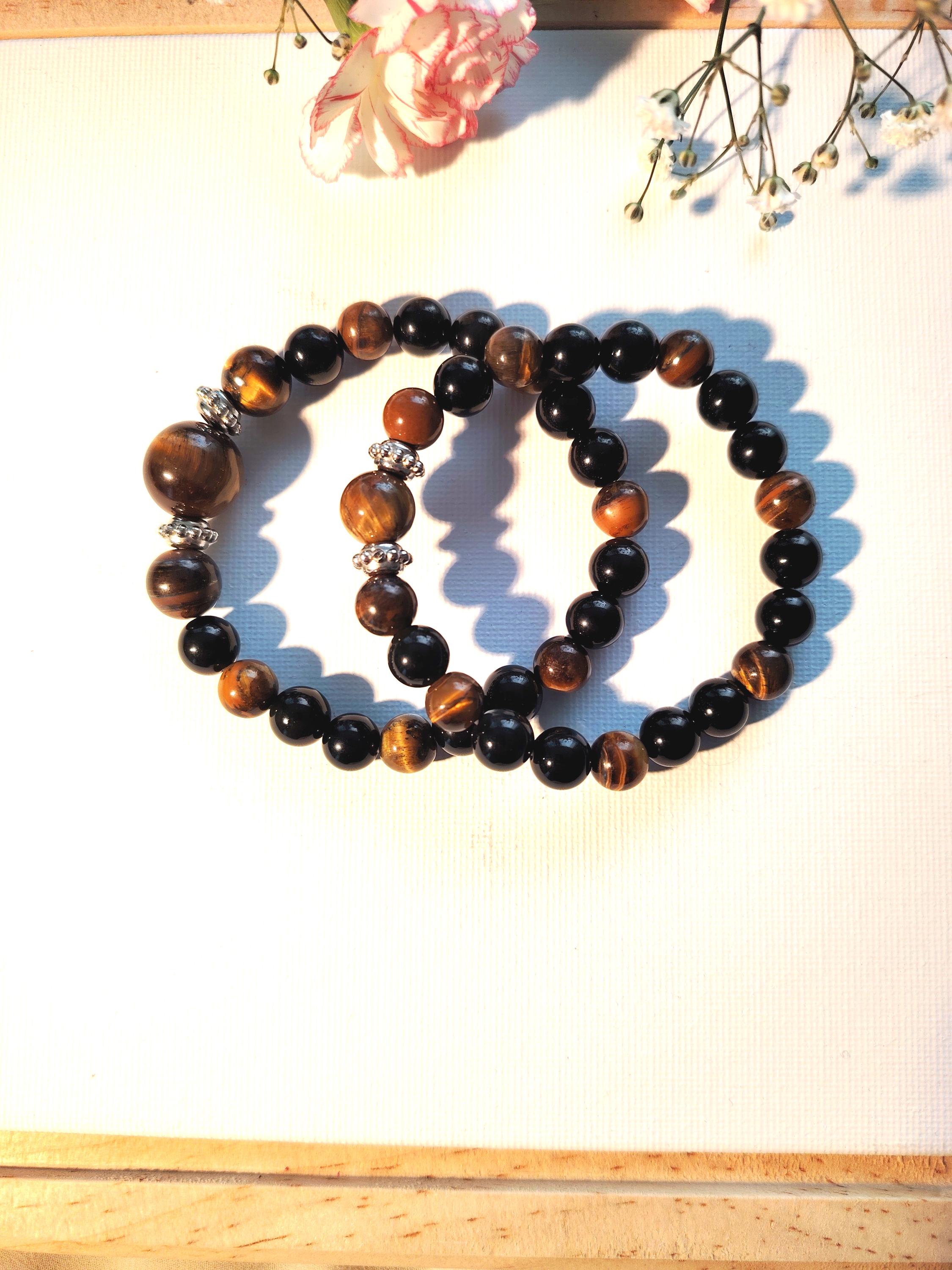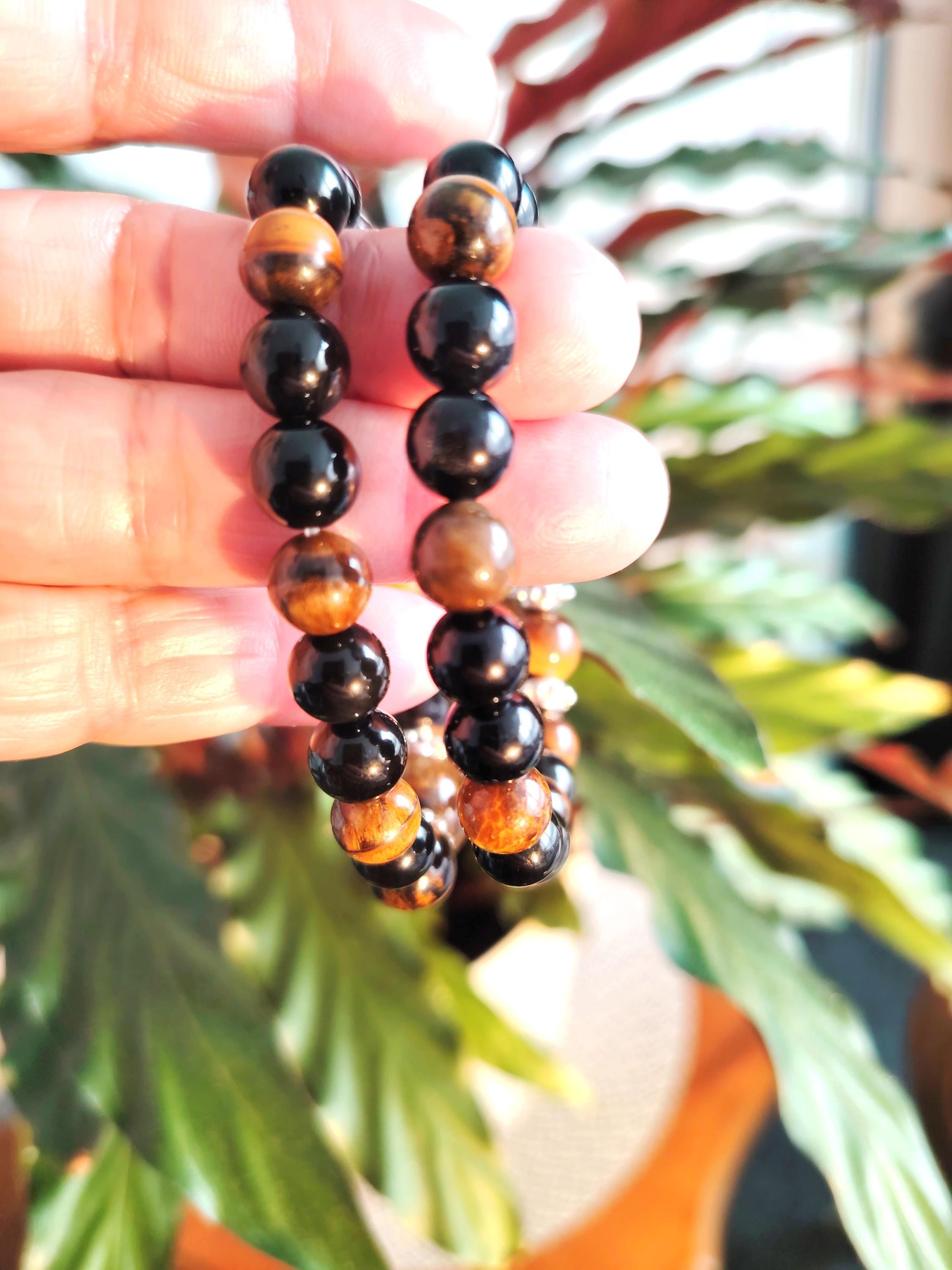 🌟Natural Tiger’s Eye & Black Agate beads symbolising strength, balance, and protection
