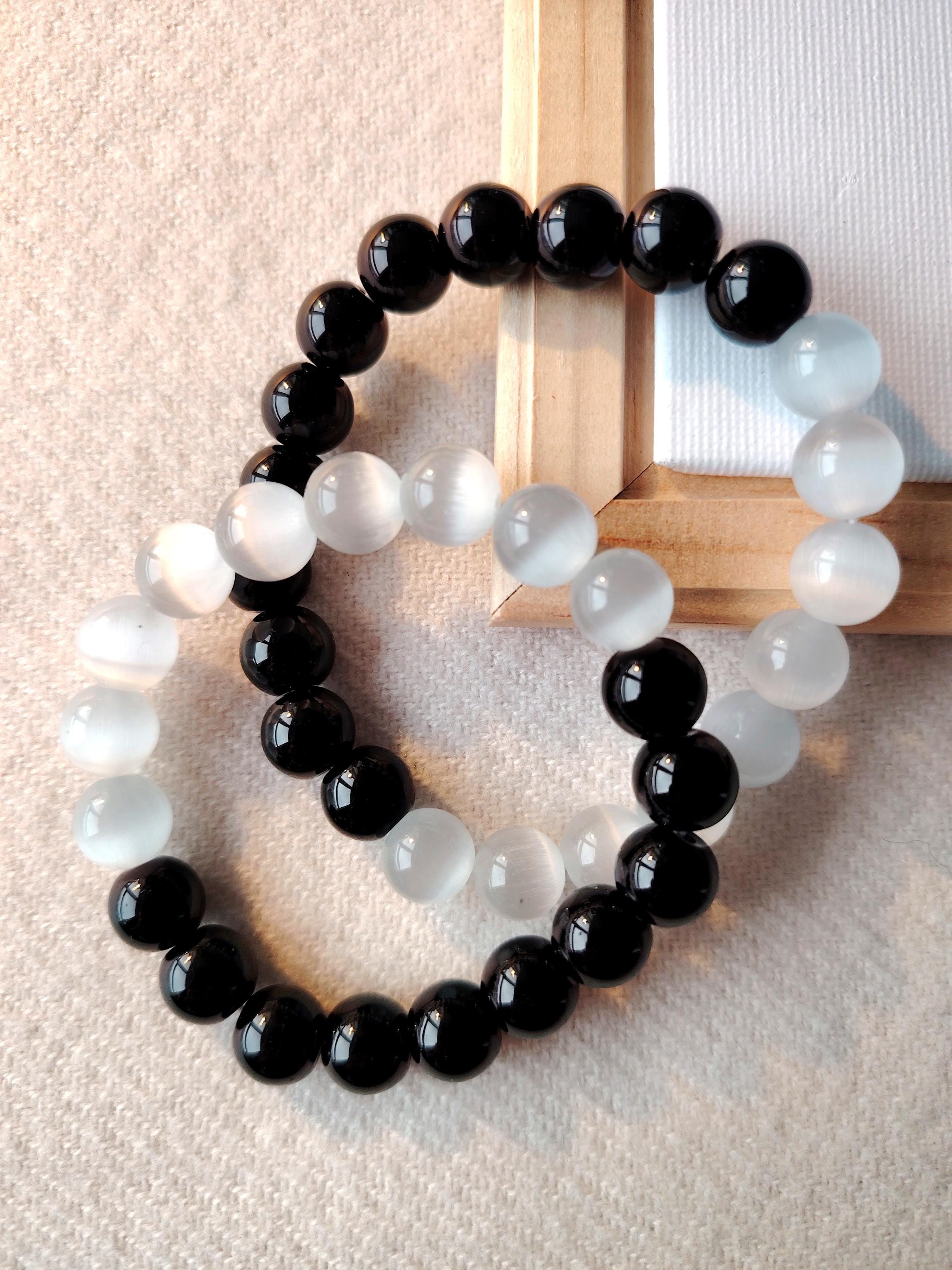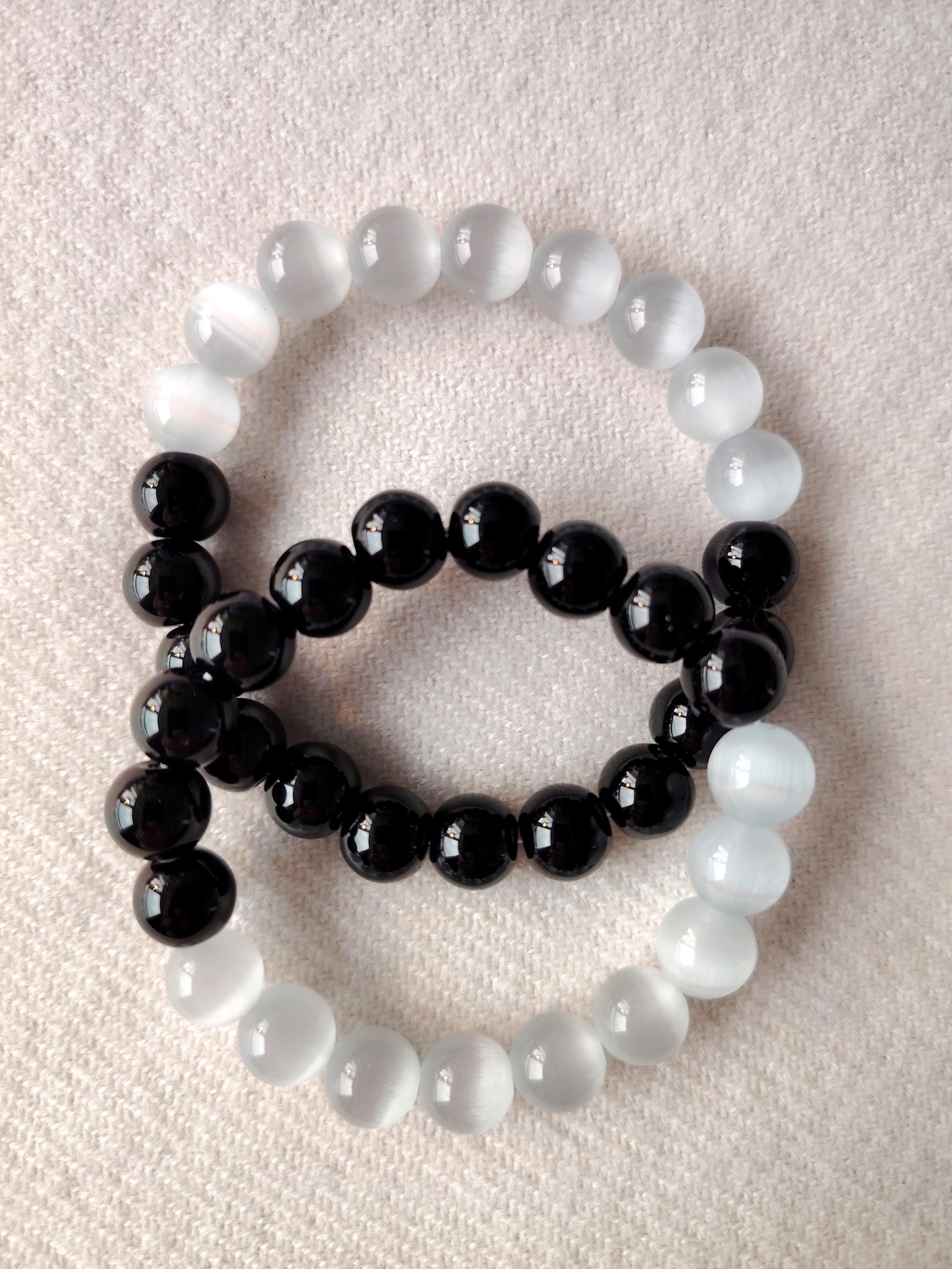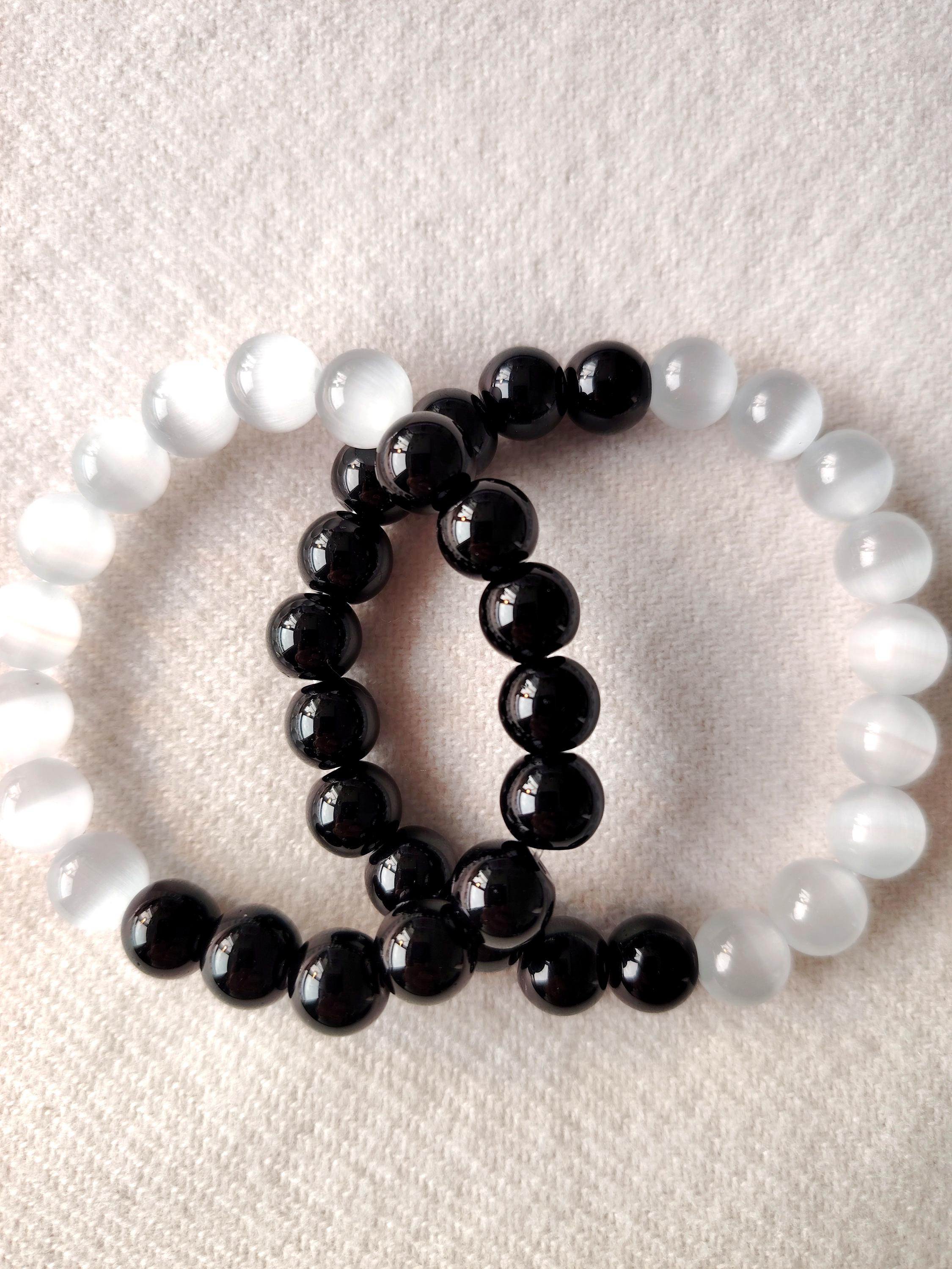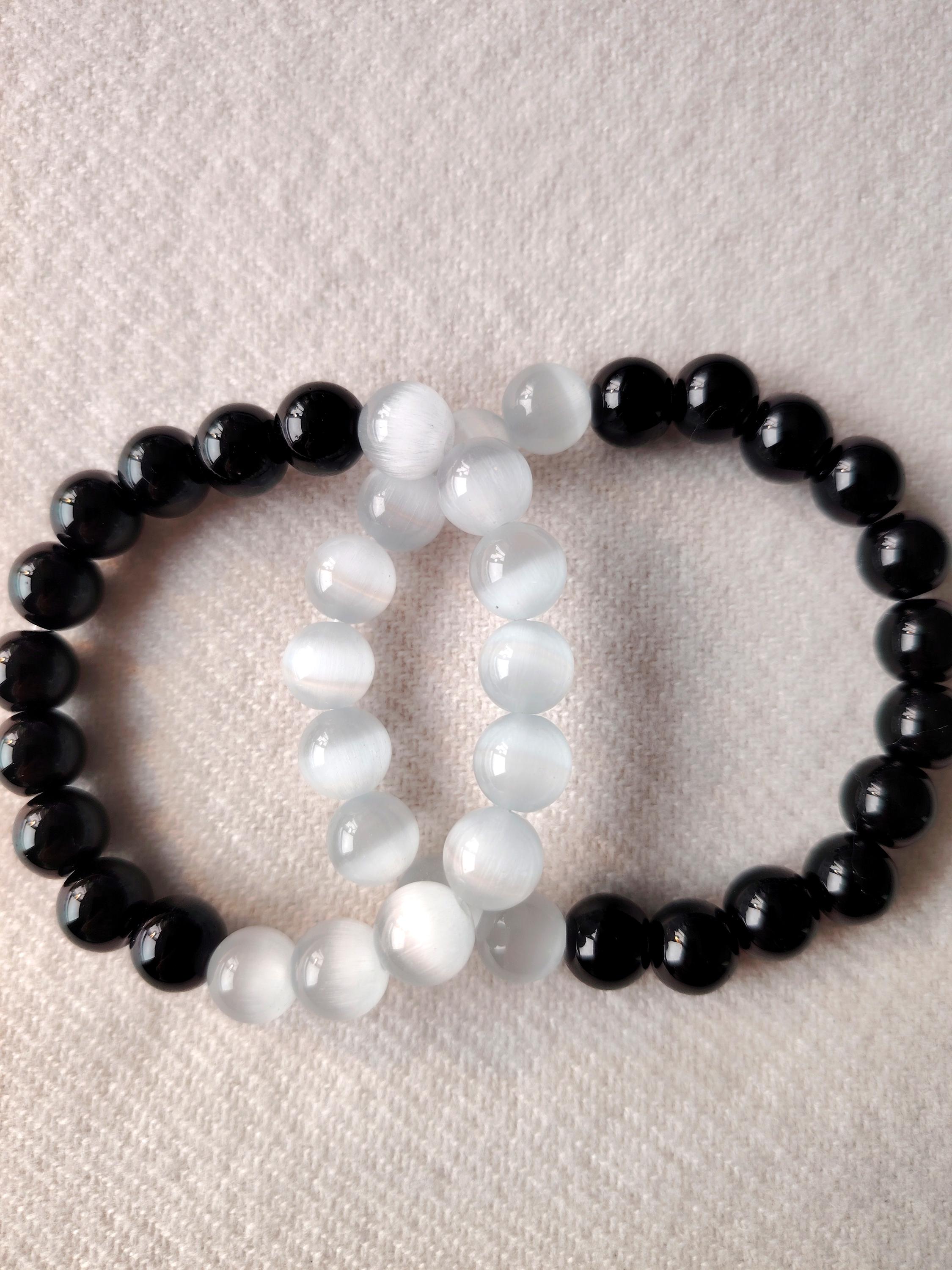 This matching bracelet set pairs Moonstone and Black Agate—two gemstones that reflect the balance of a deep, steady relationship.