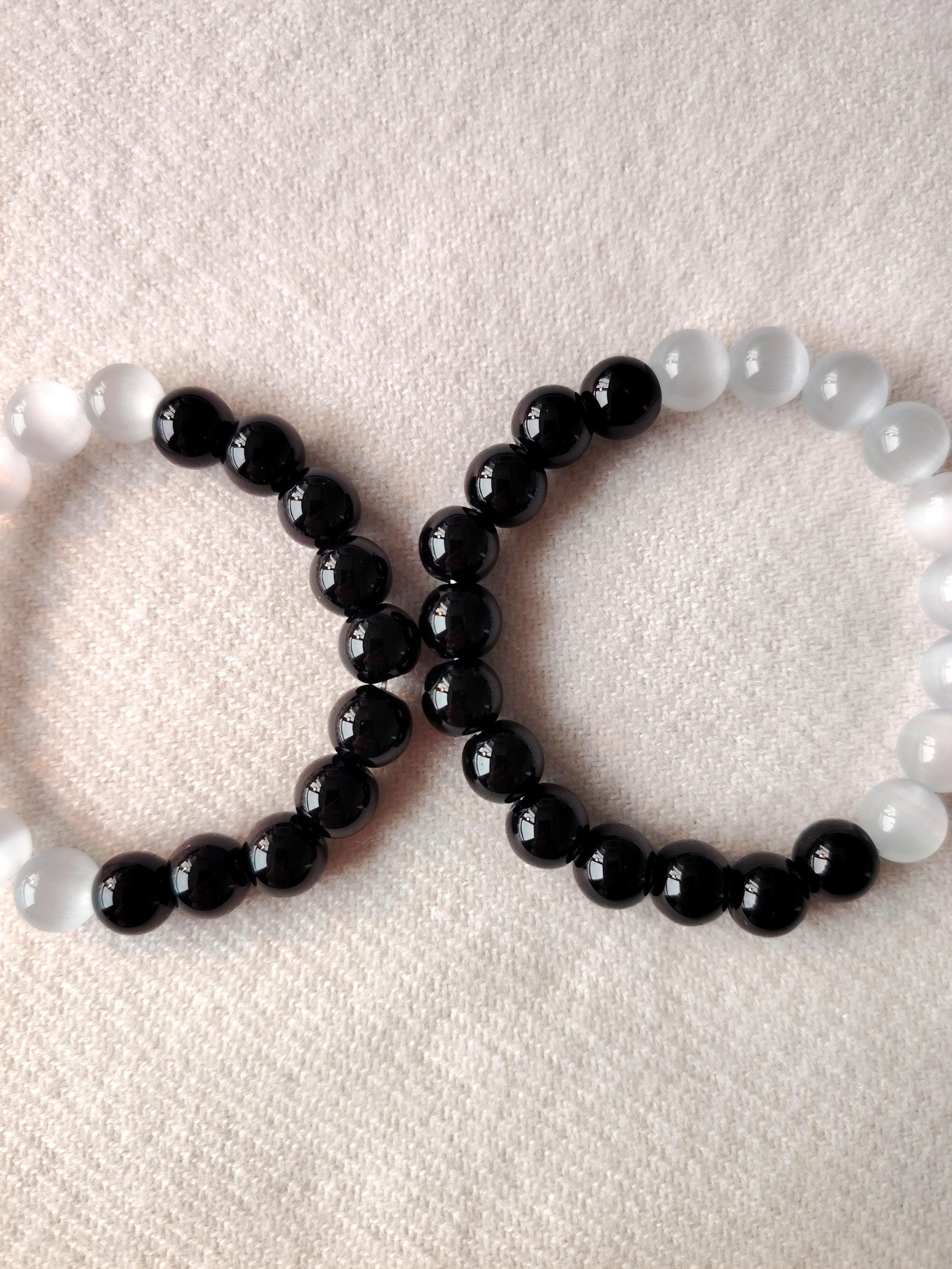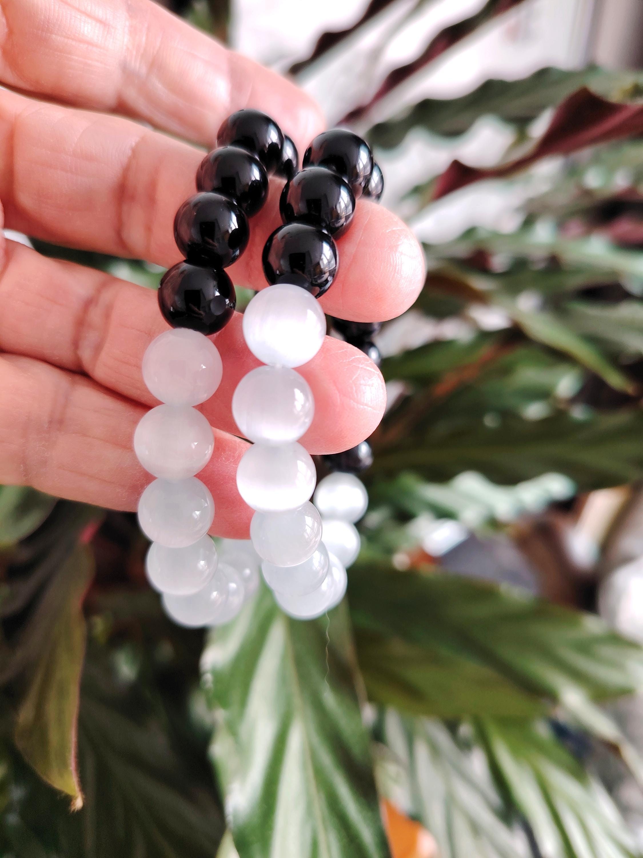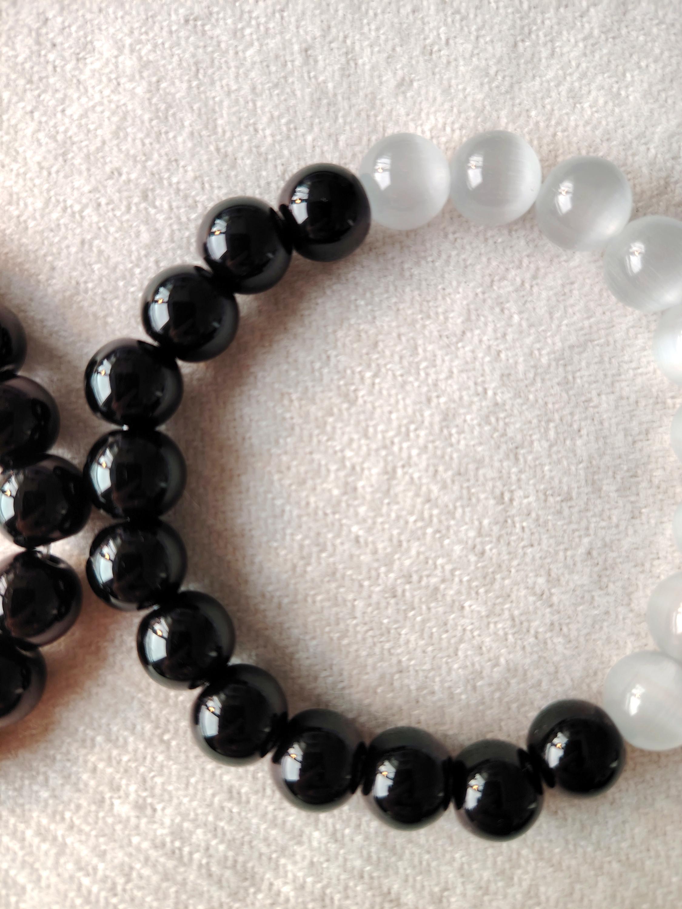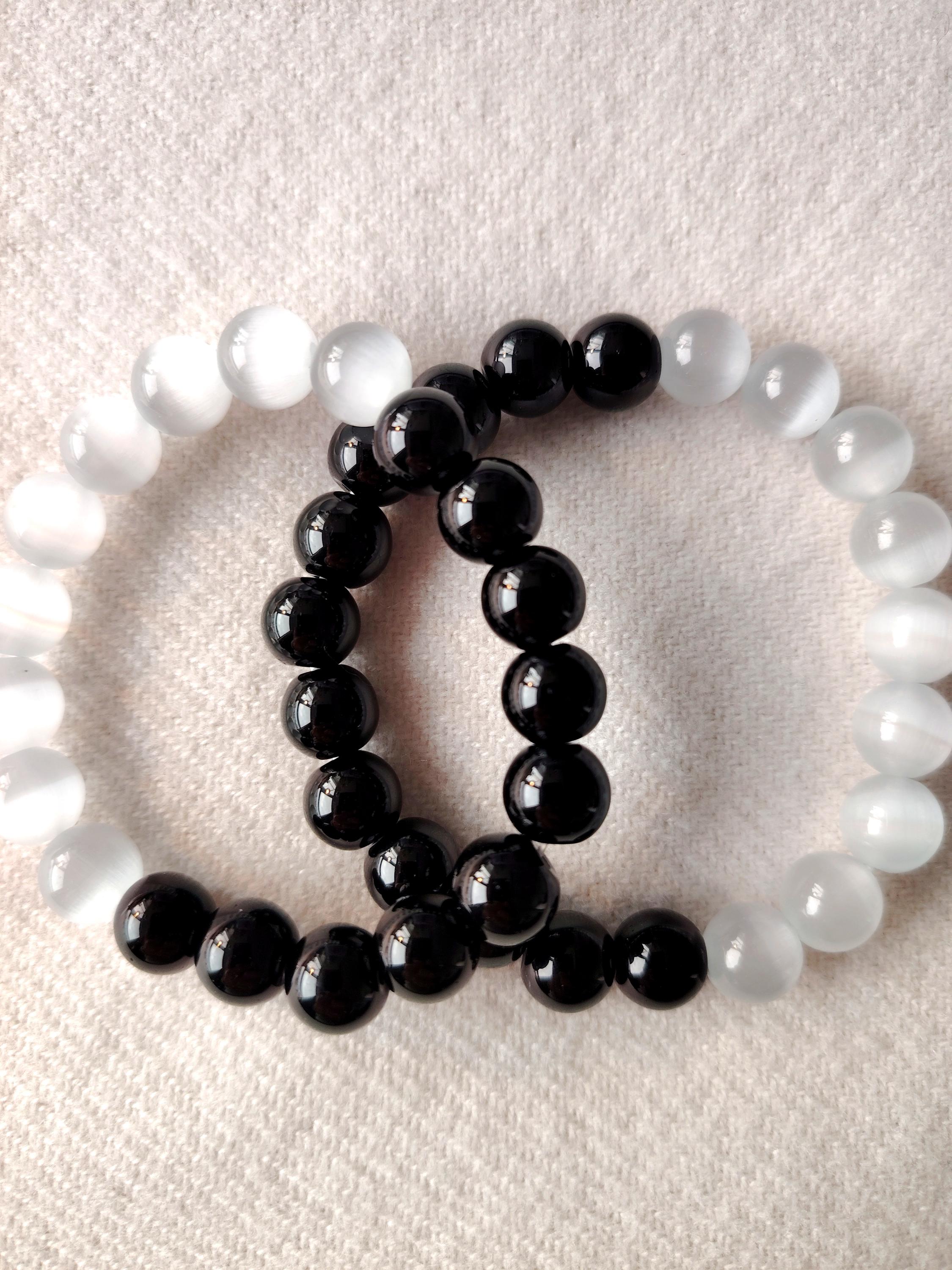 This matching bracelet set pairs Moonstone and Black Agate—two gemstones that reflect the balance of a deep, steady relationship.