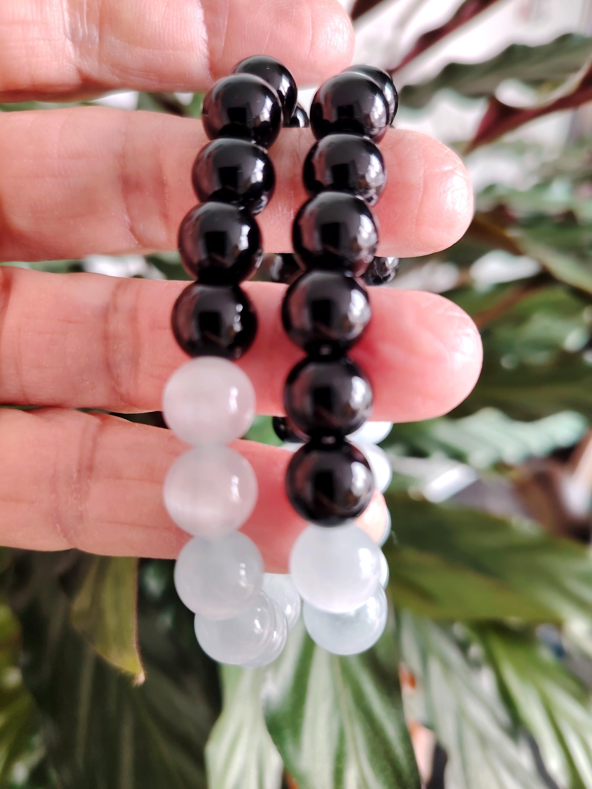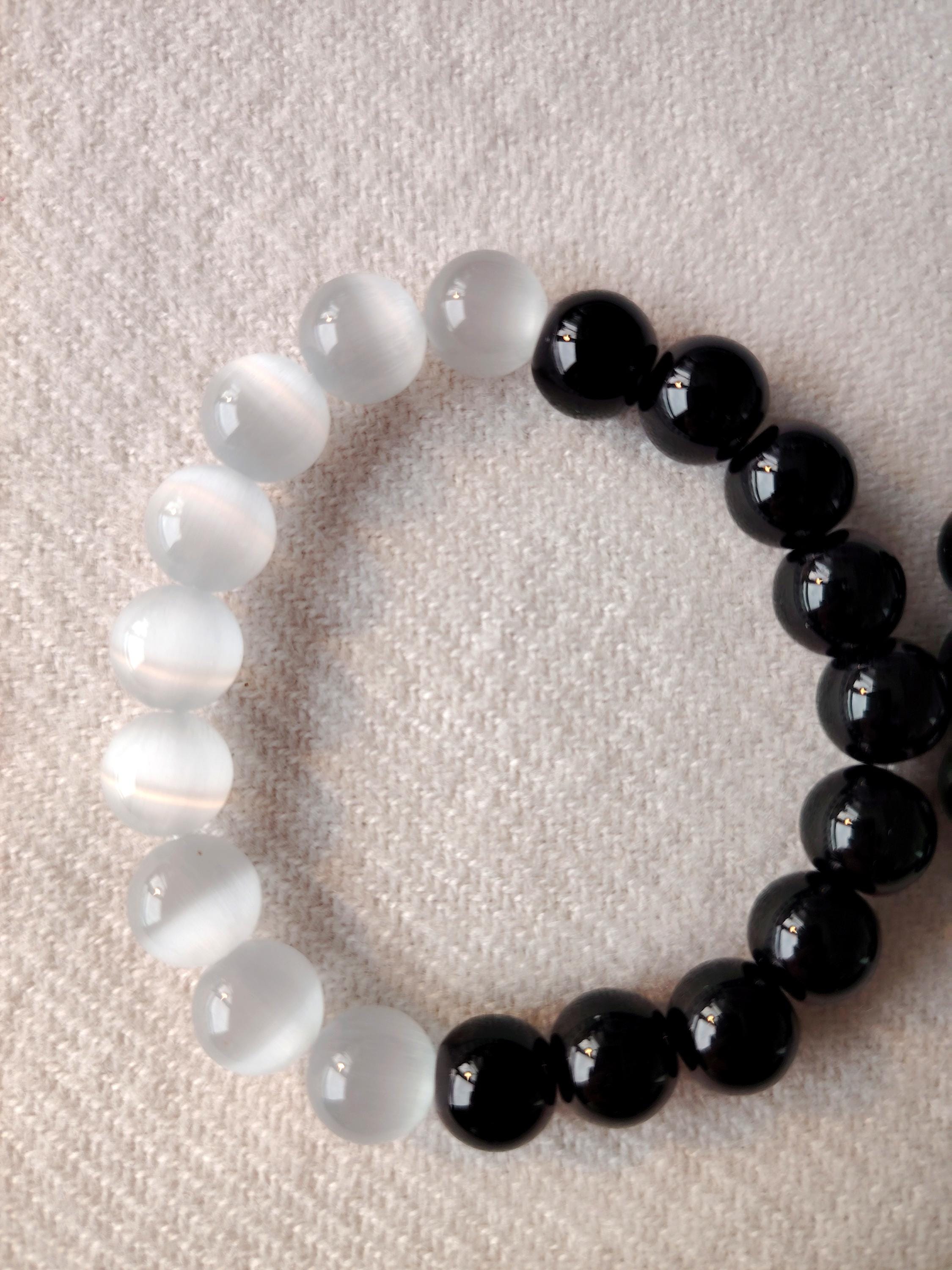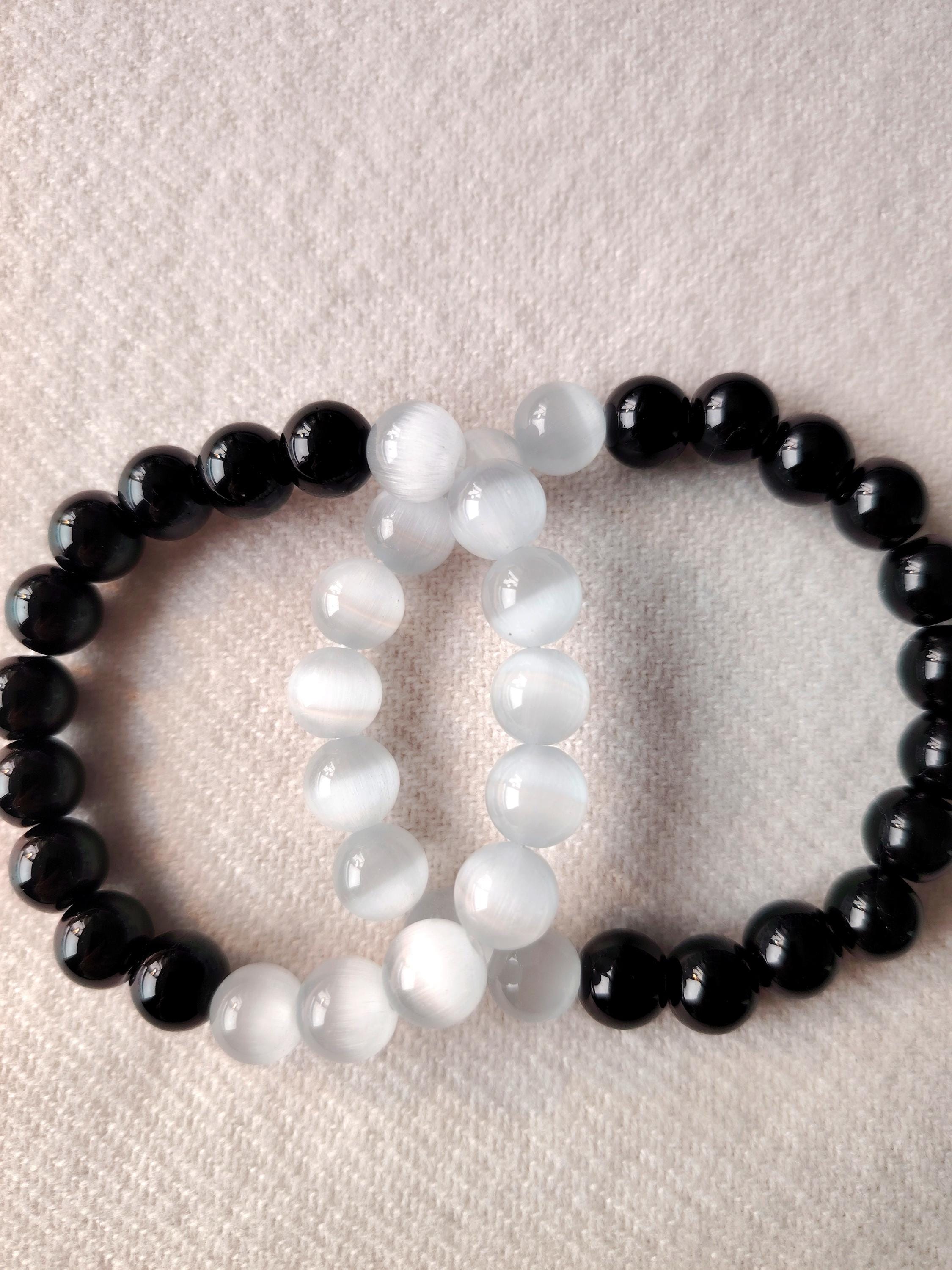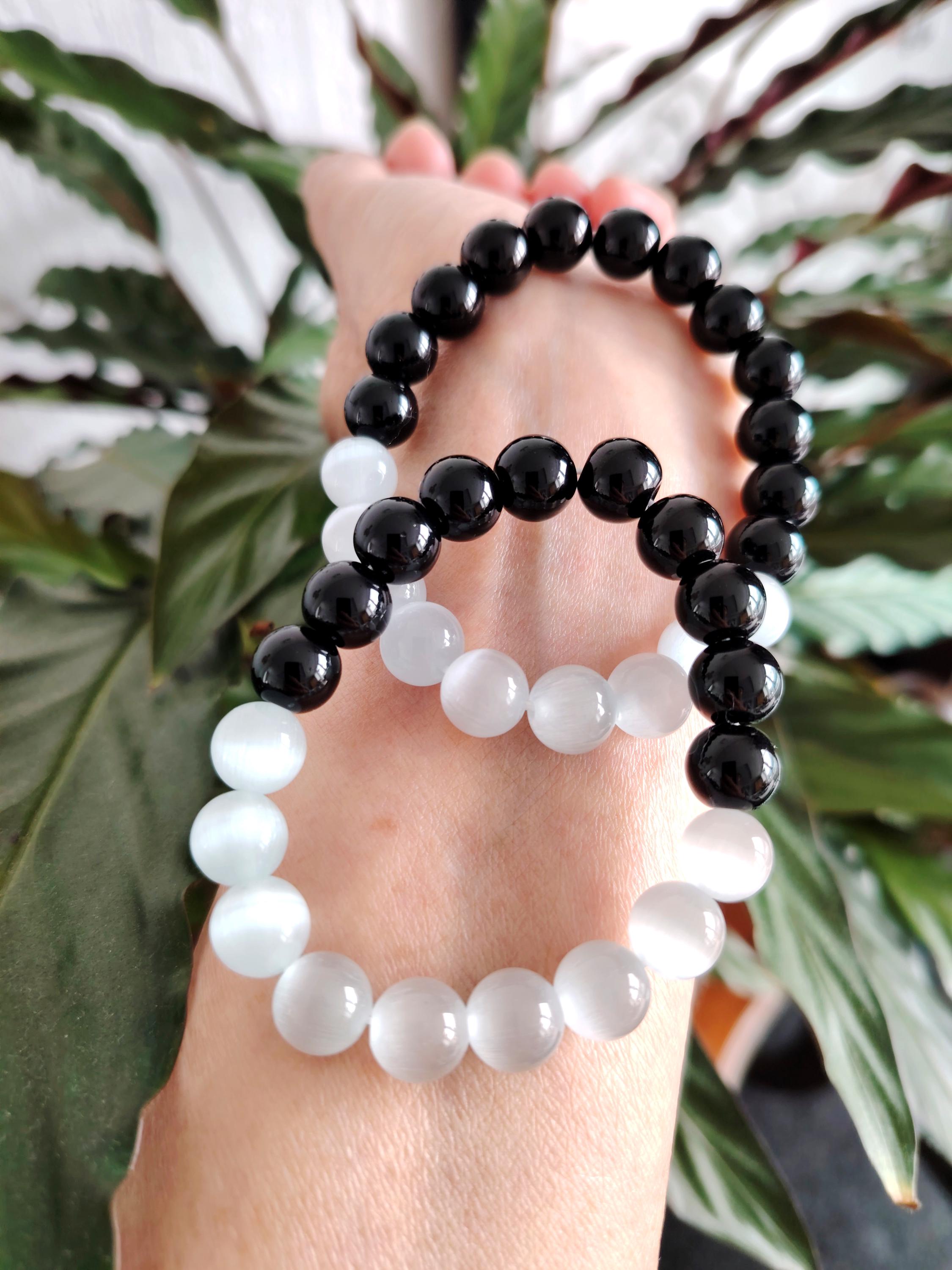 This matching bracelet set pairs Moonstone and Black Agate—two gemstones that reflect the balance of a deep, steady relationship.