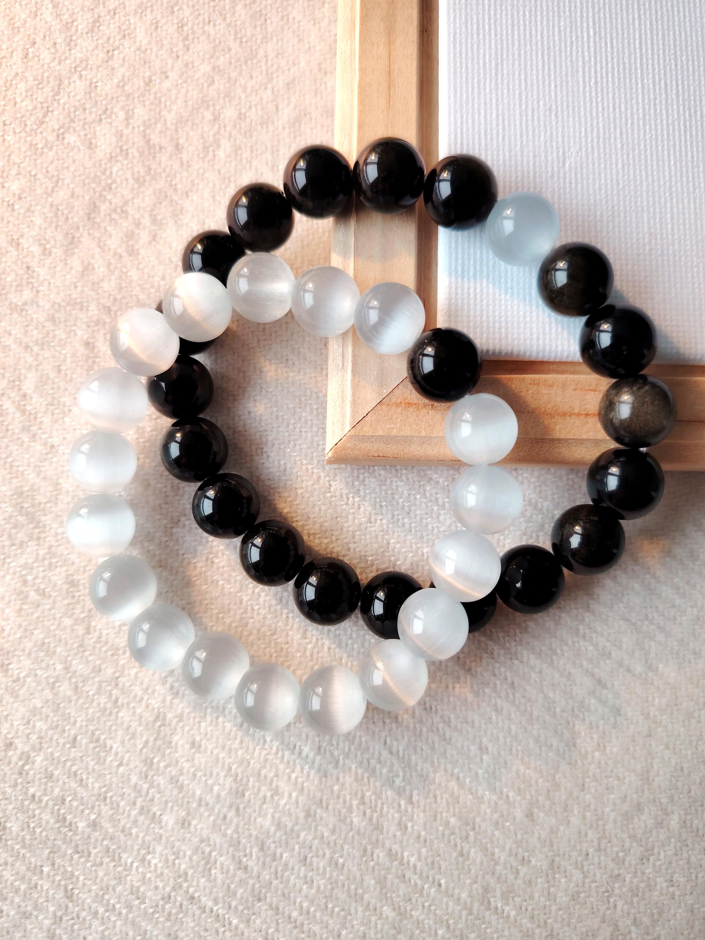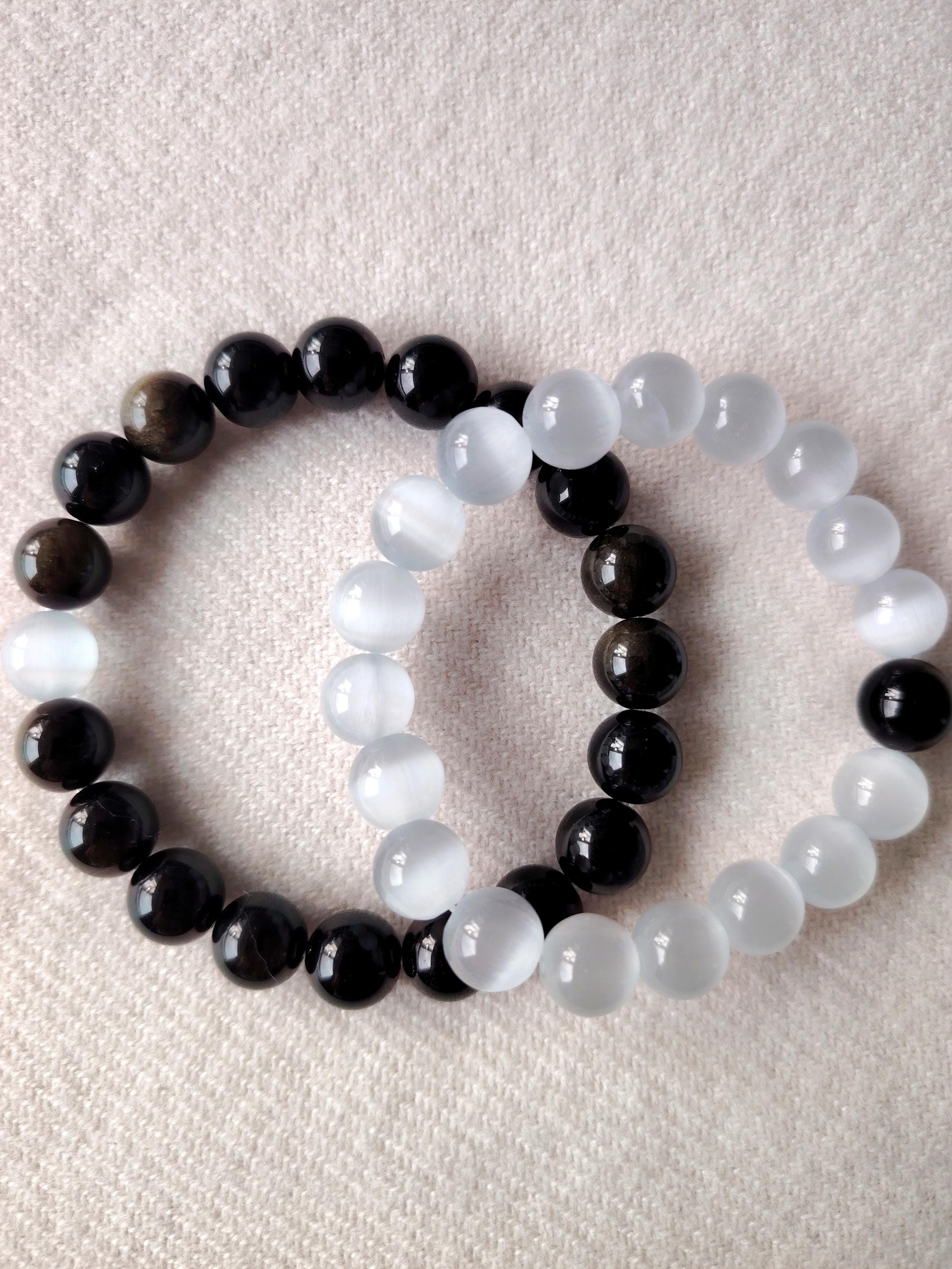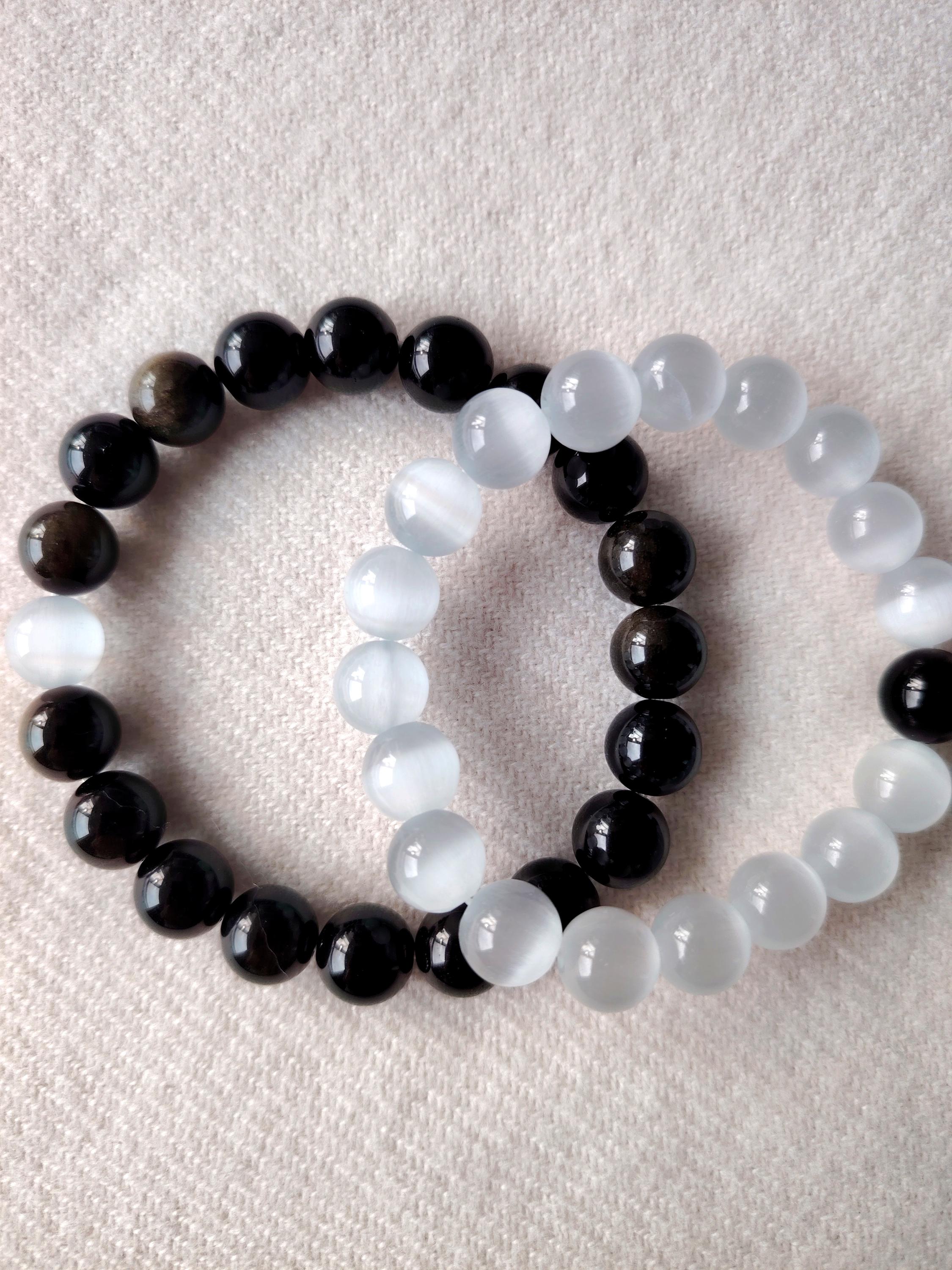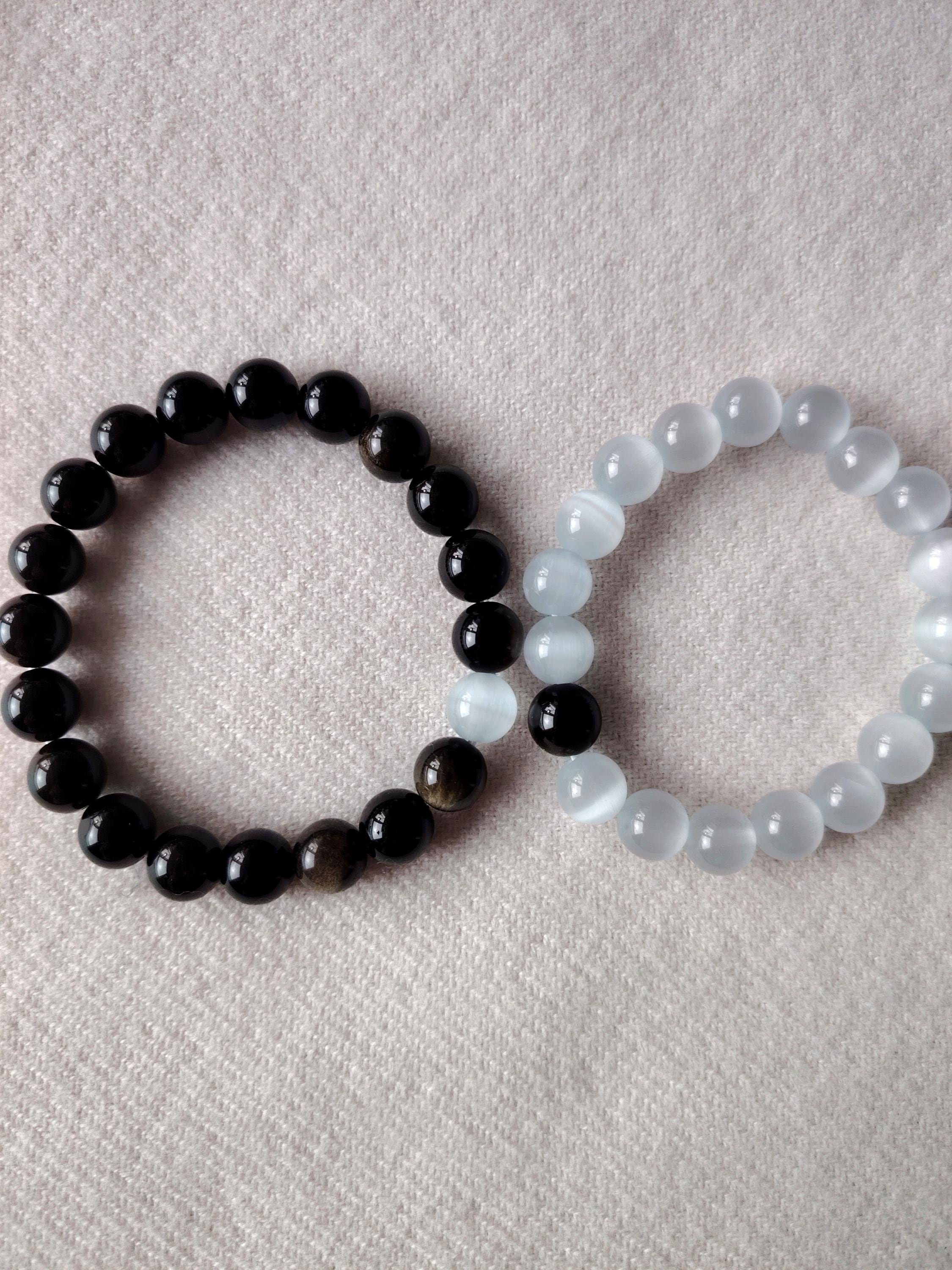 This matching bracelet set pairs Moonstone and Black Agate—two gemstones that reflect the balance of a deep, steady relationship.