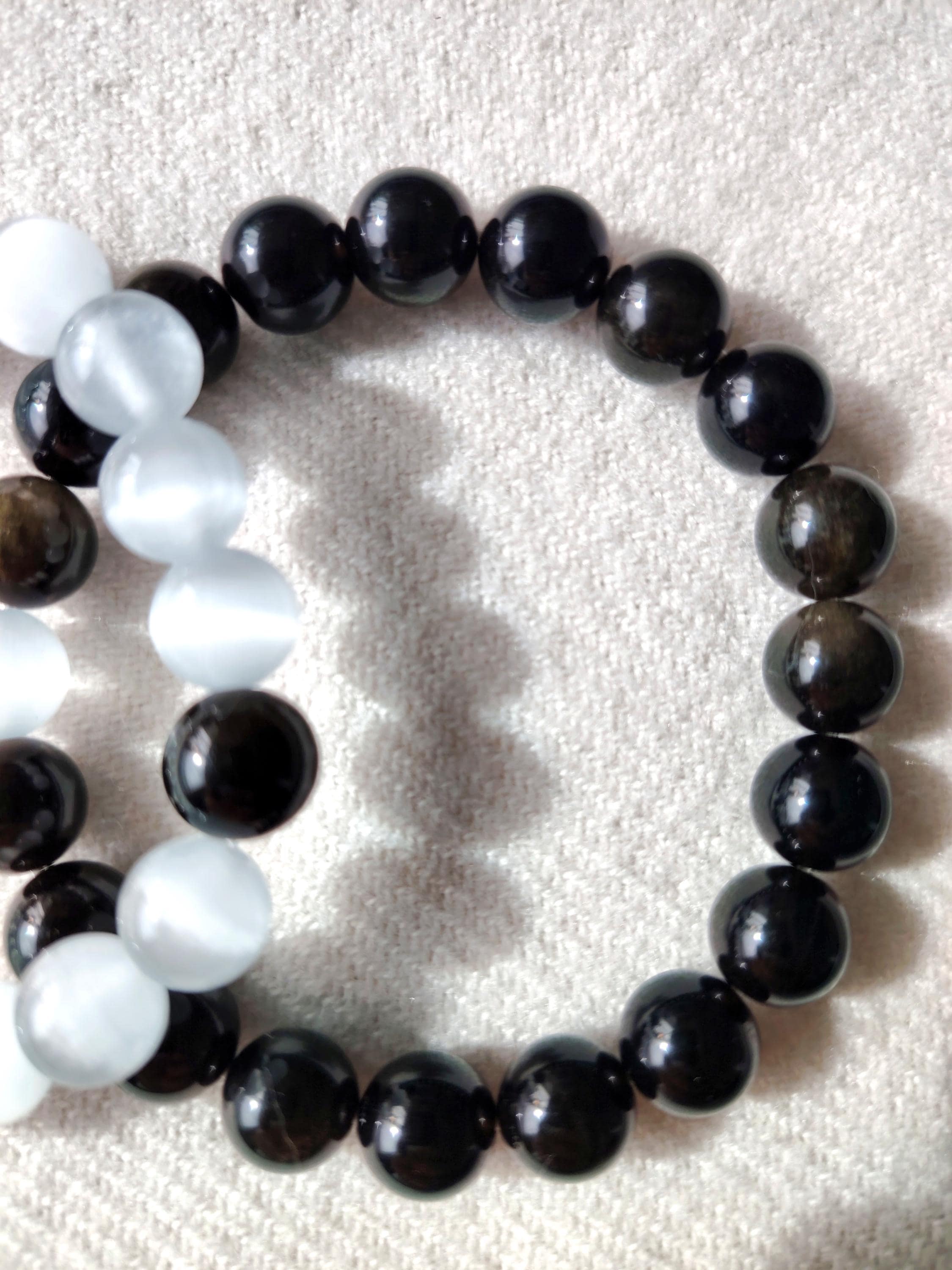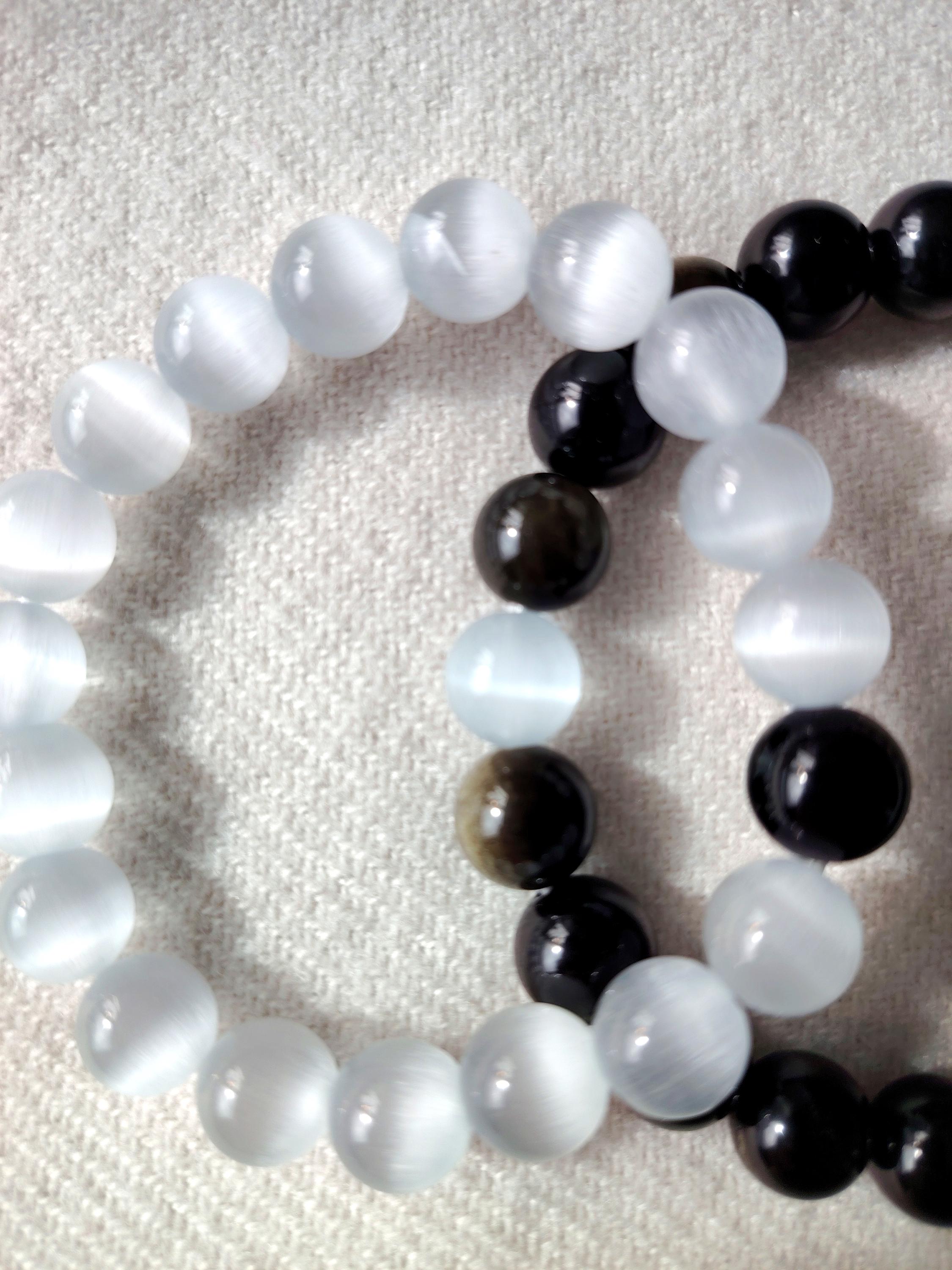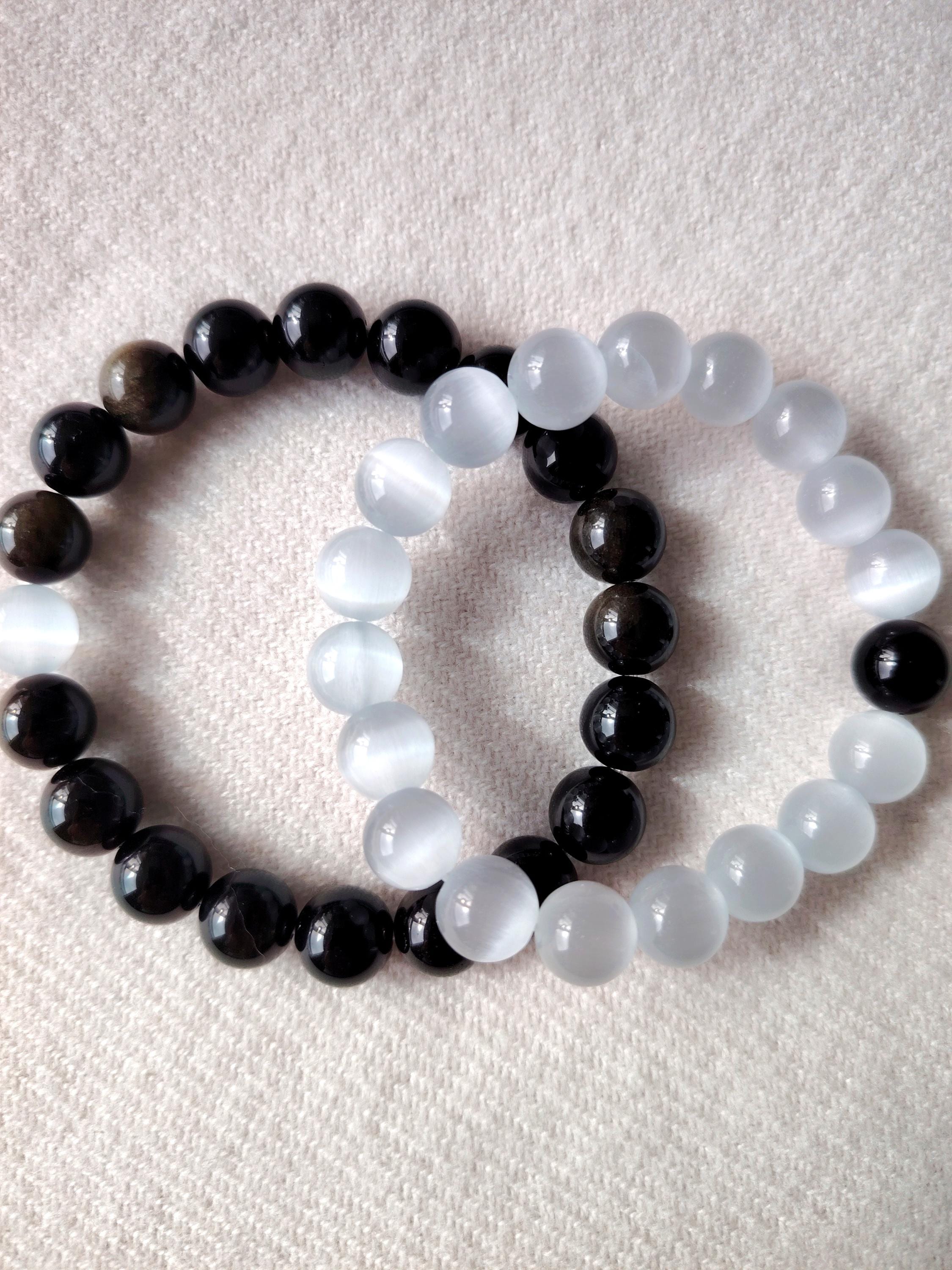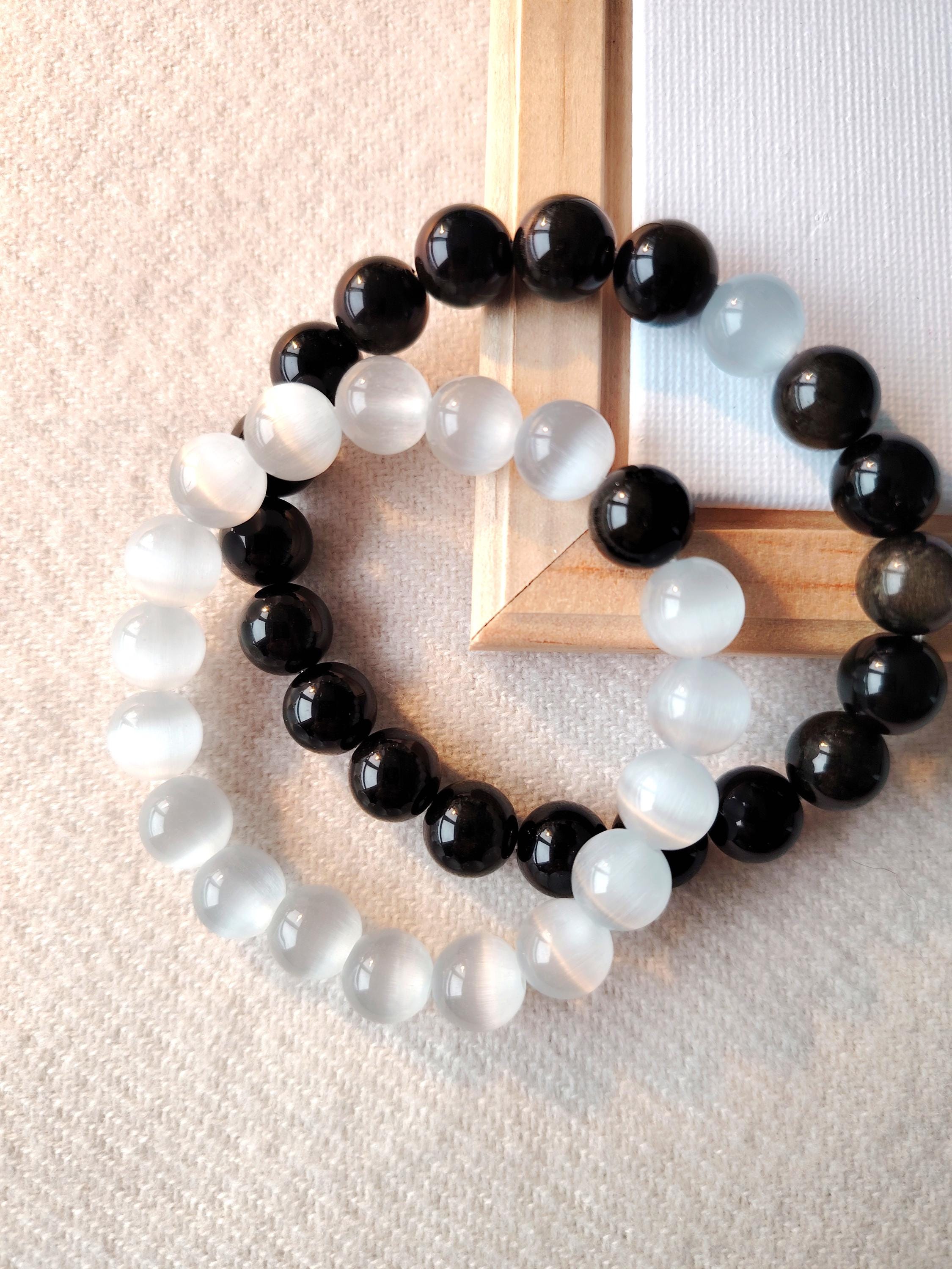 This matching bracelet set pairs Moonstone and Black Agate—two gemstones that reflect the balance of a deep, steady relationship.