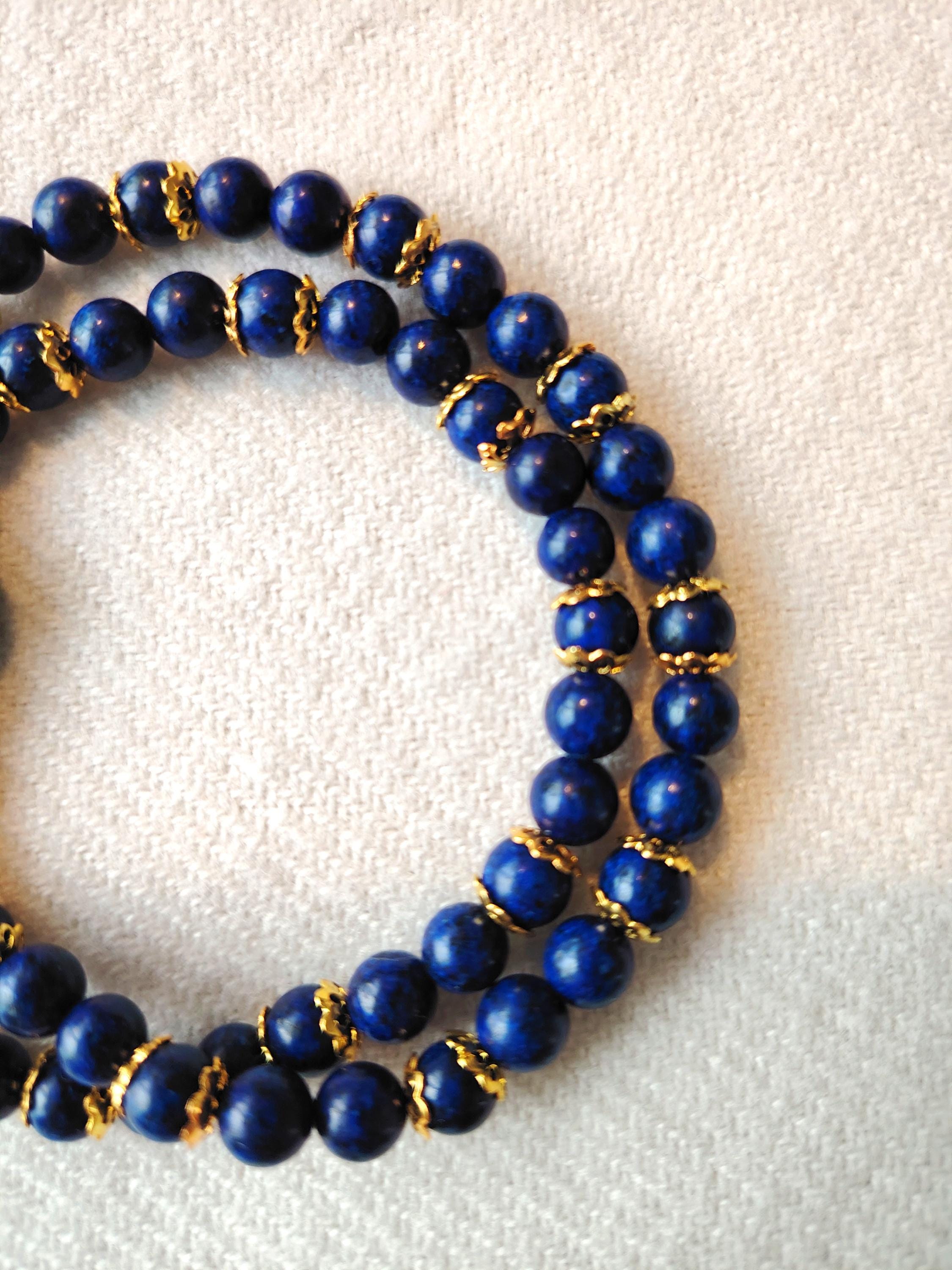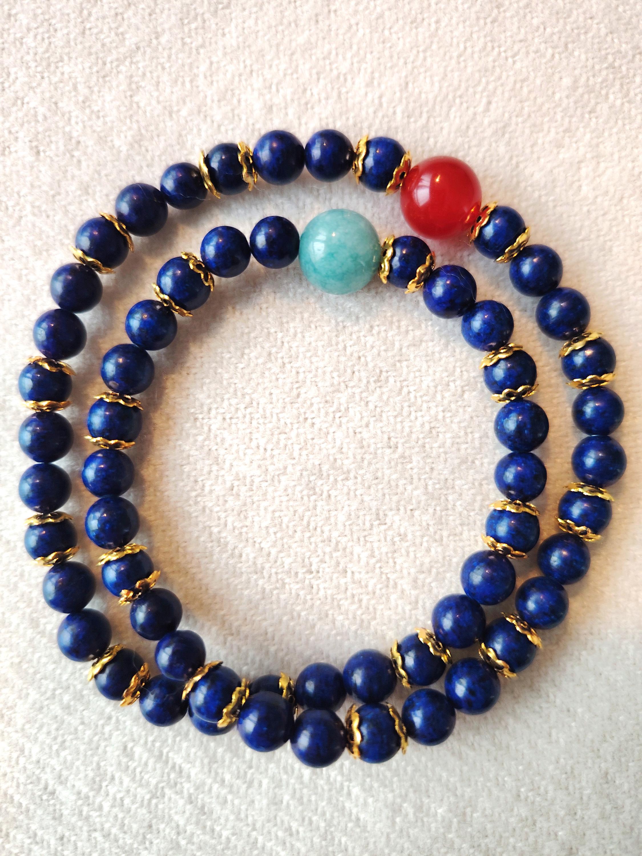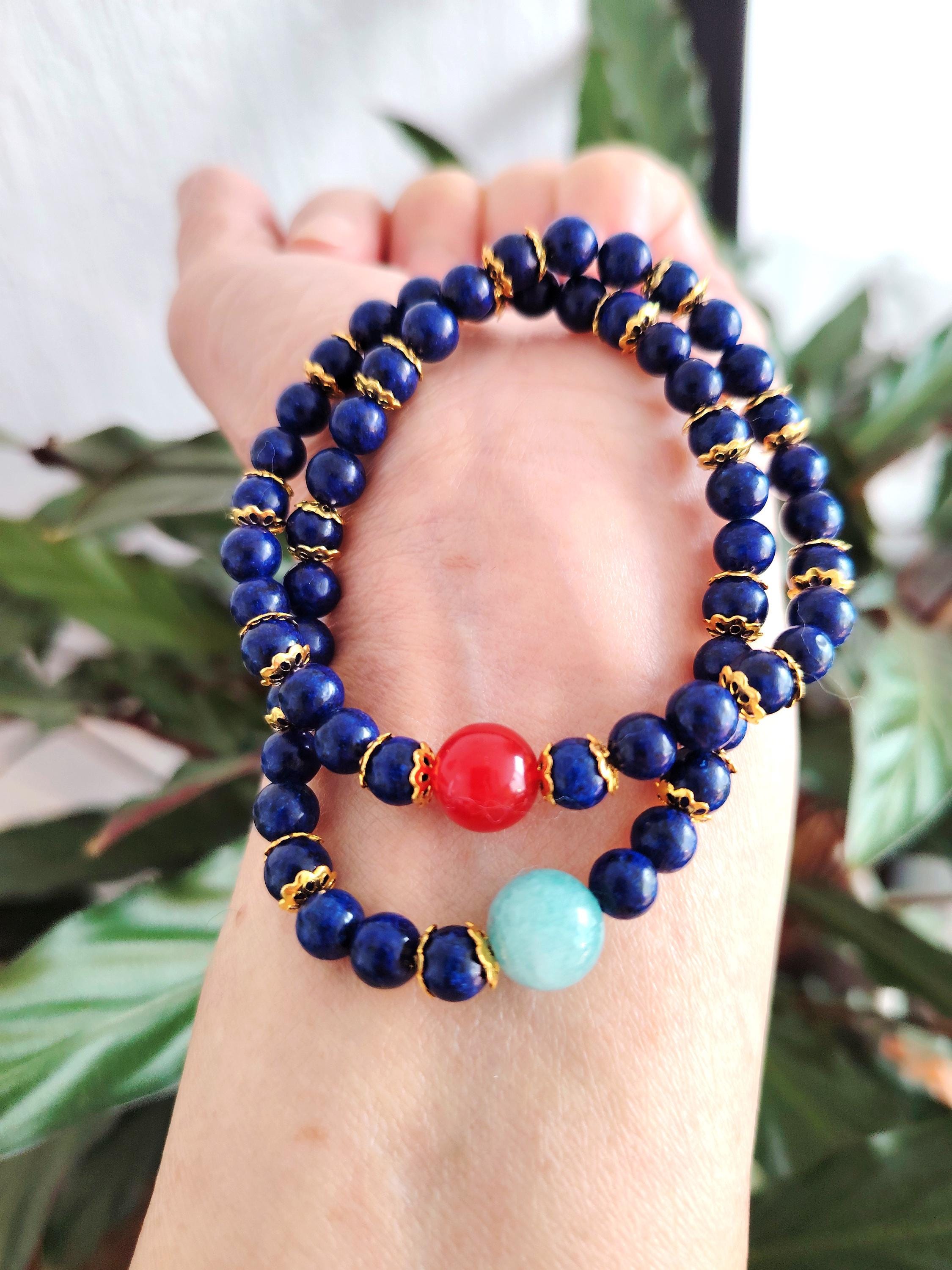 💙This natural lapis lazuli double-wrap bracelet carries the deep, velvety blue of the ocean at night, as if the calmest part of the sea and the quietest corner of the sky were gently wrapped around your wrist. The natural golden flecks shimmer like scattered starlight, giving the bracelet a subtle yet captivating glow.