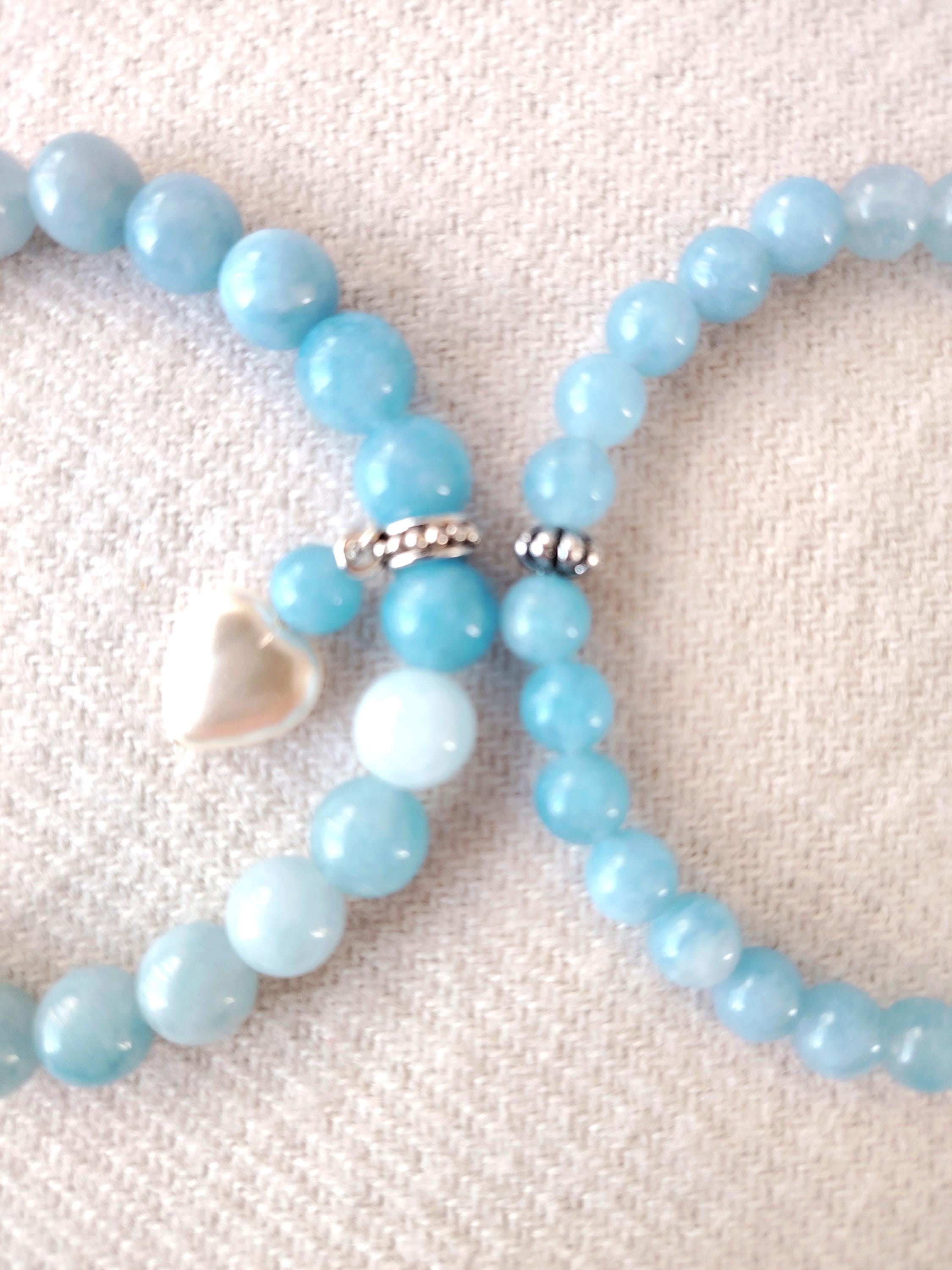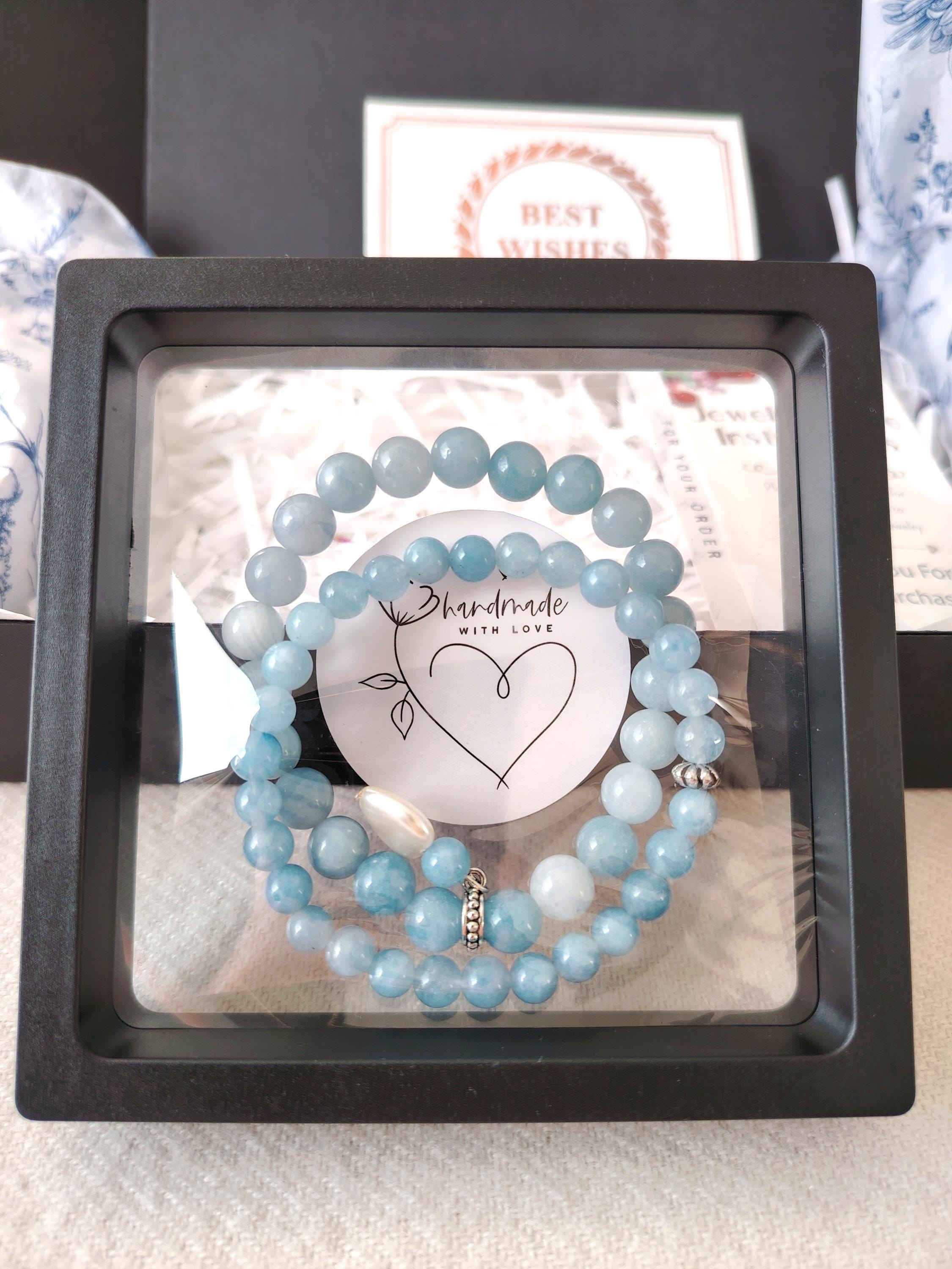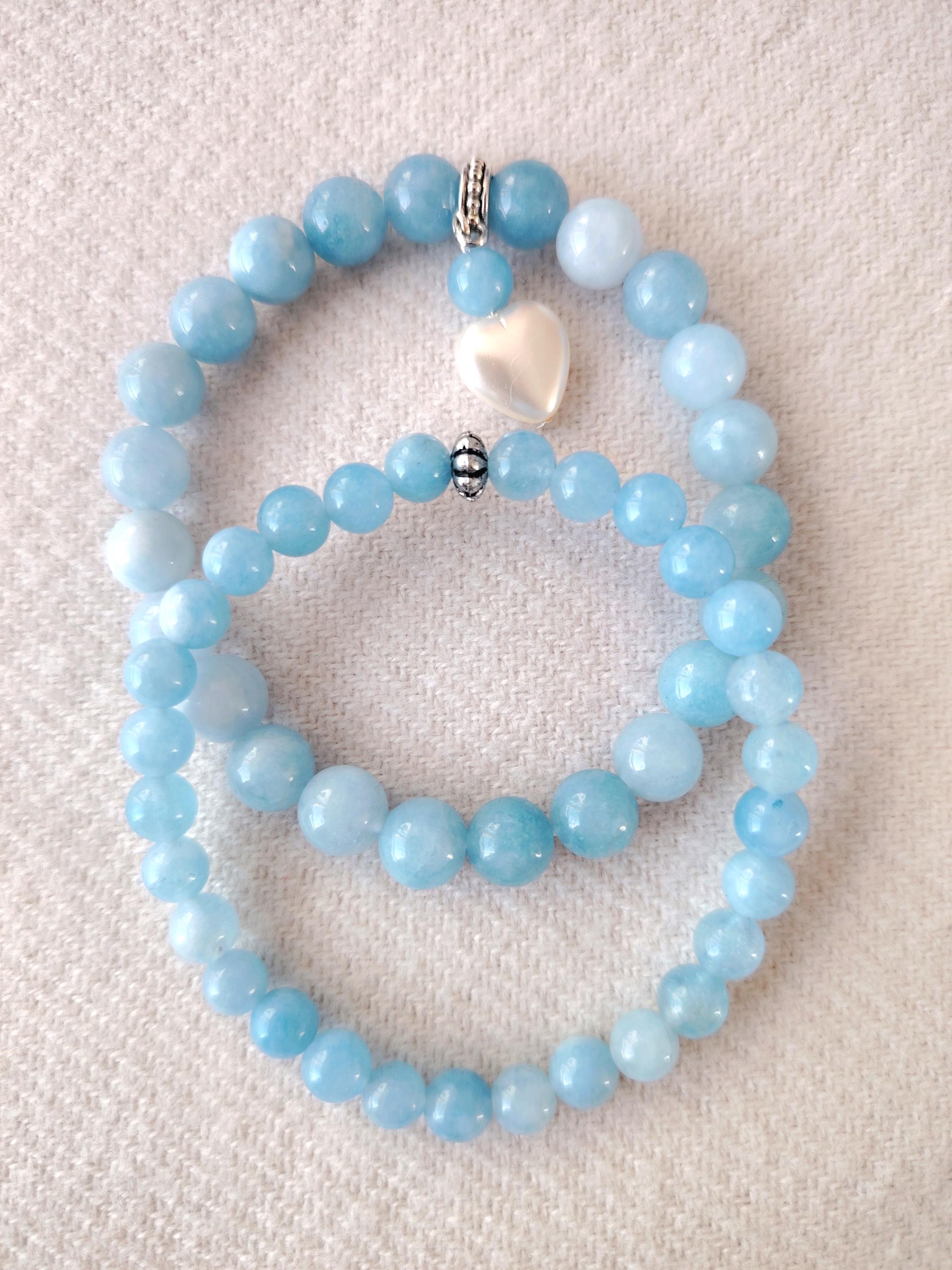 A pair of aquamarine couple bracelets symbolising calm love, honest communication, and a bond as pure and endless as the sea. Aquamarine’s gentle blue energy blesses the relationship with harmony, trust, and a future filled with clarity and peace.
