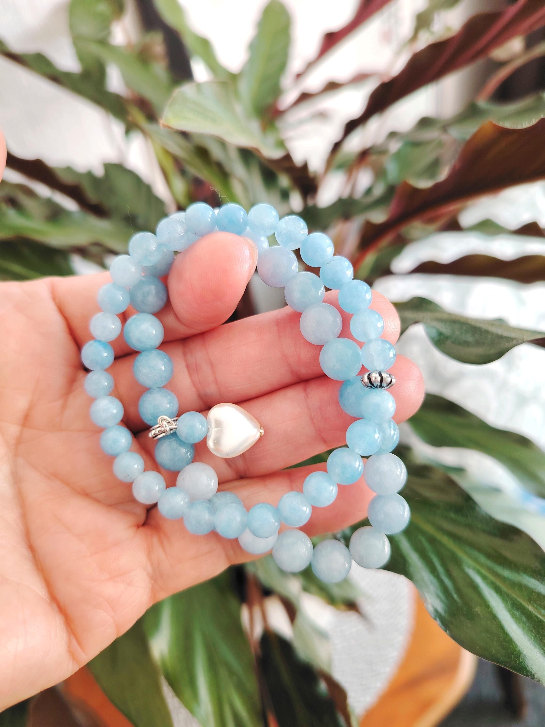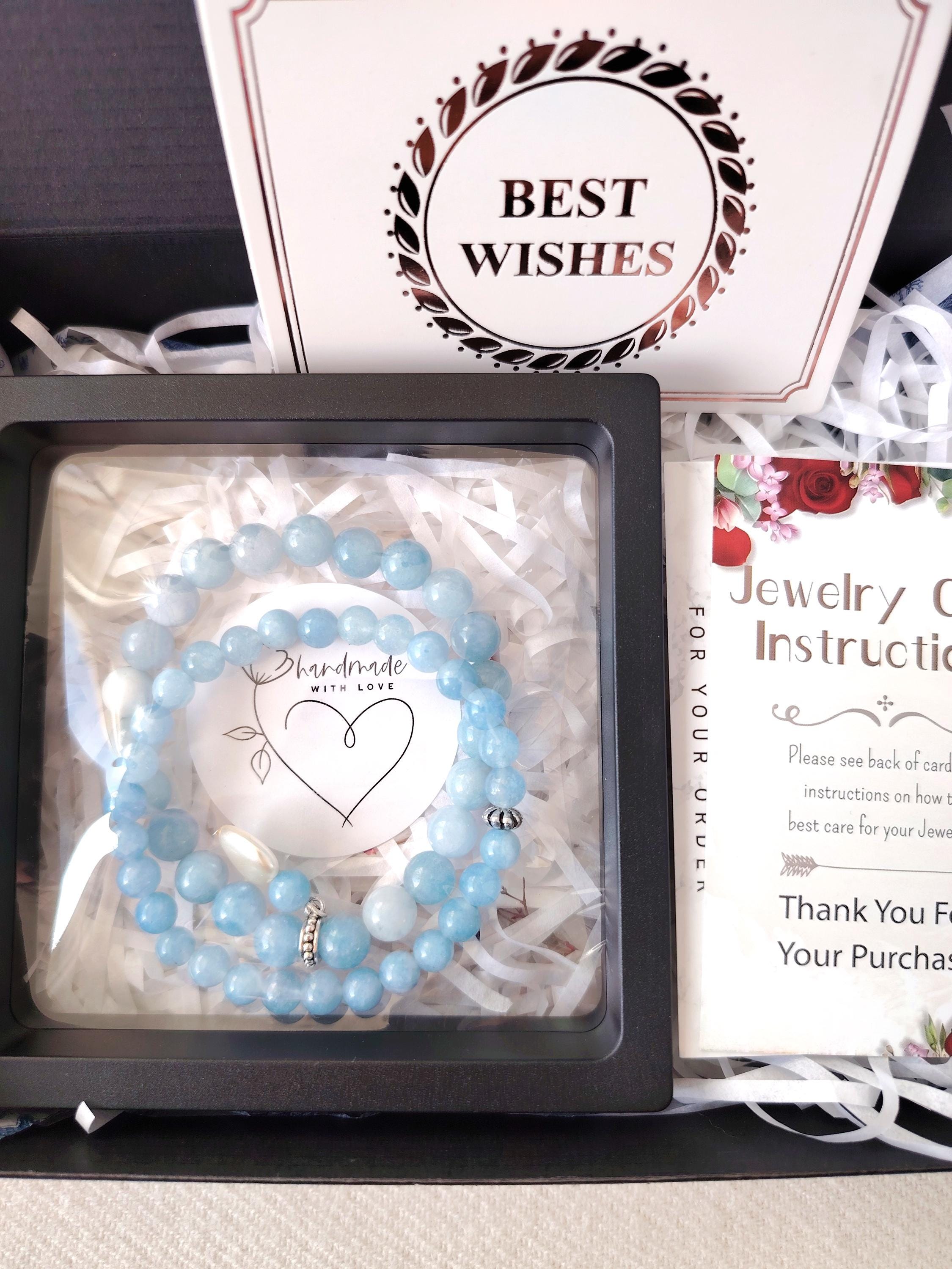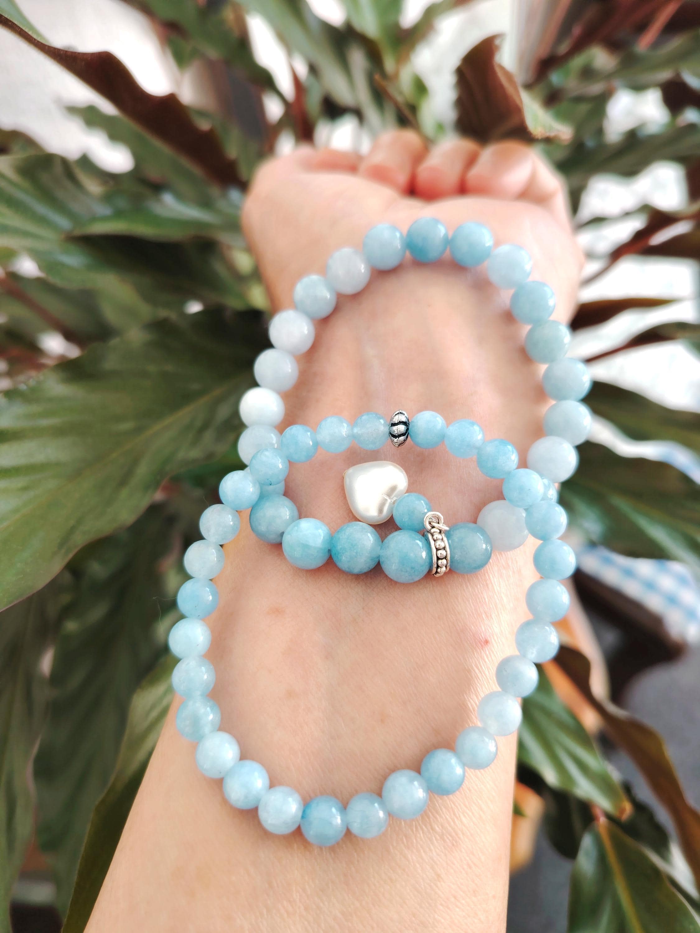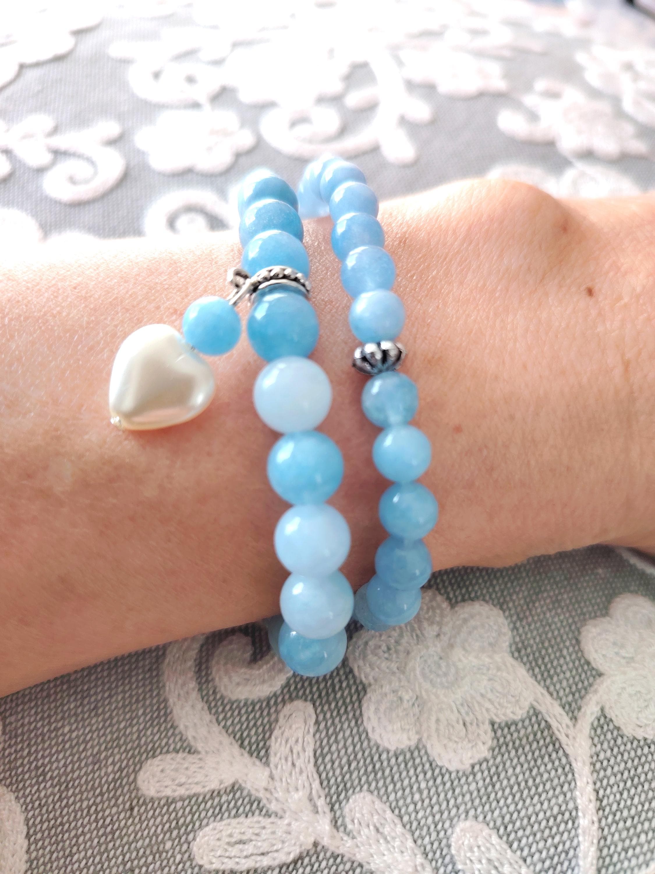 A pair of aquamarine couple bracelets symbolising calm love, honest communication, and a bond as pure and endless as the sea. Aquamarine’s gentle blue energy blesses the relationship with harmony, trust, and a future filled with clarity and peace.