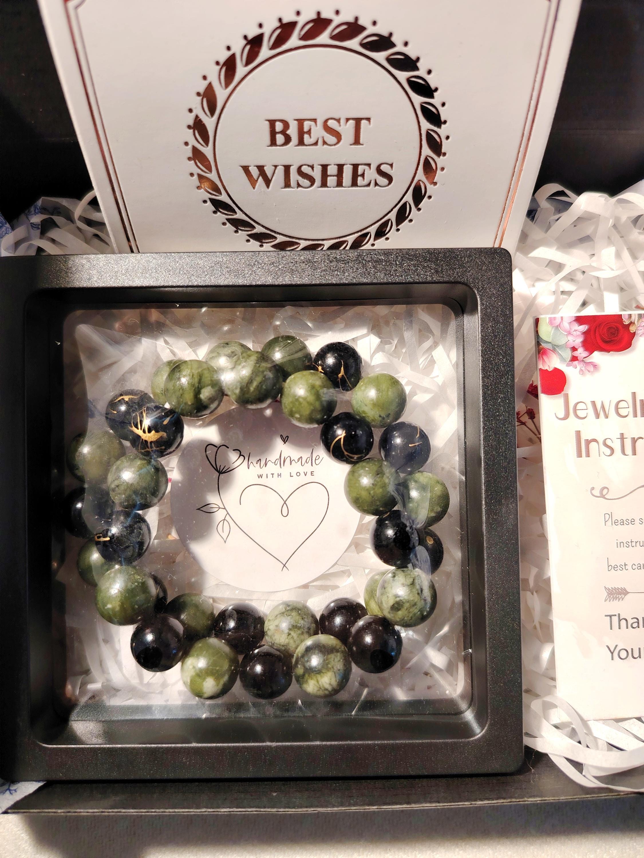 Product Material: Natural Green Agate, Natural Black Gold Silk Agate, Strong Elastic Cord;