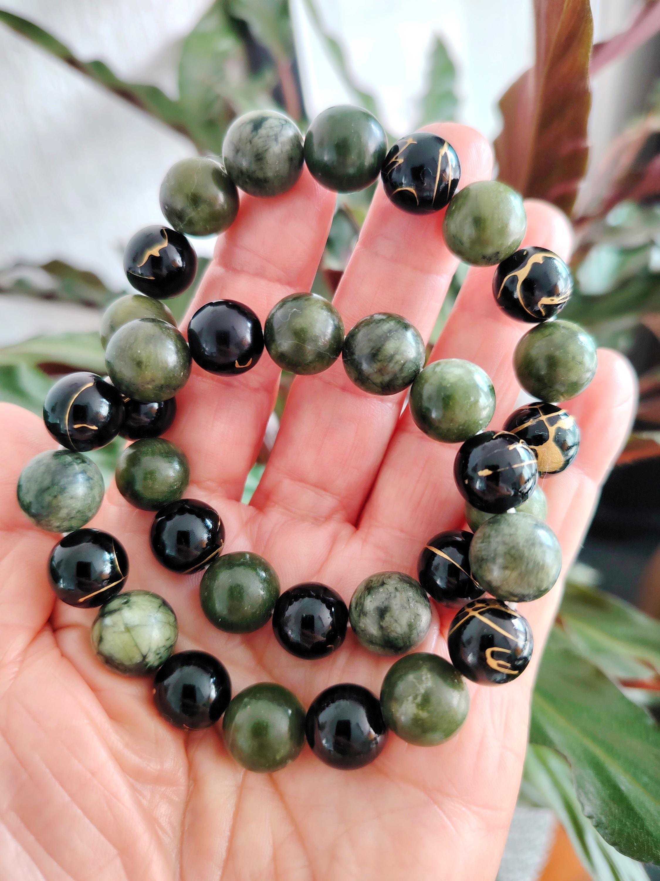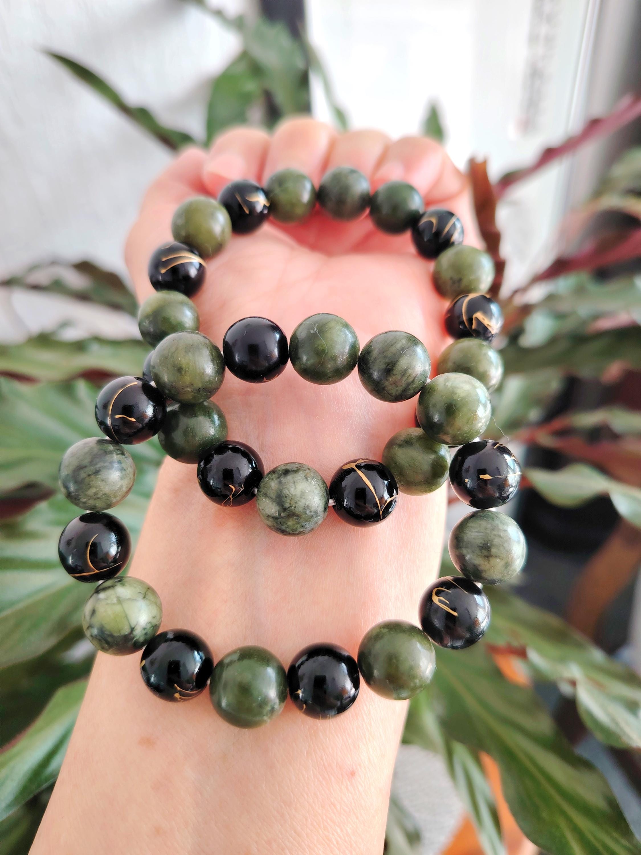 🖤💚Black Gold Silk Agate brings grounding and stability, while Green Agate offers calmness and emotional ease.