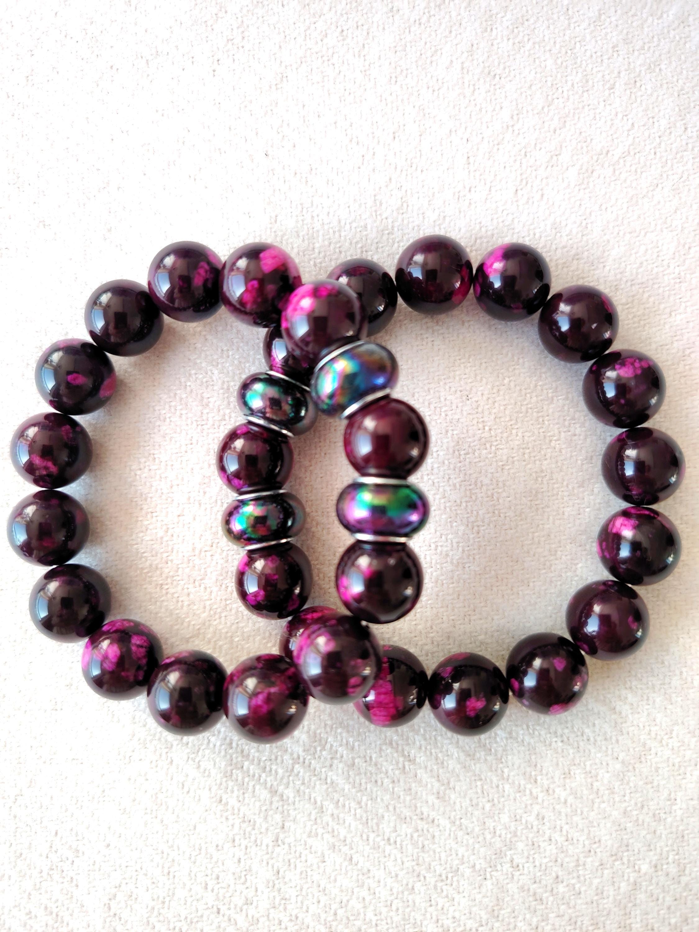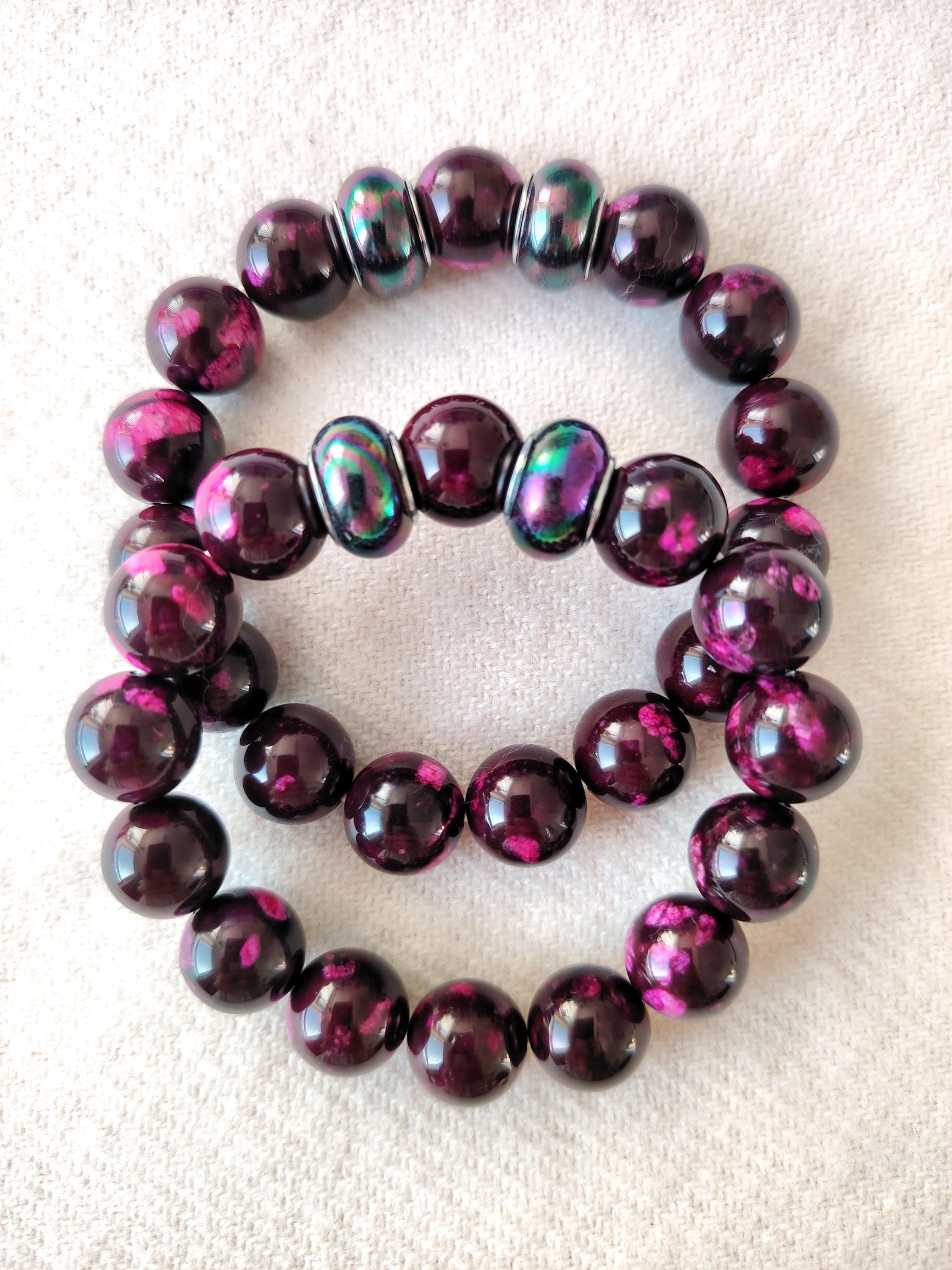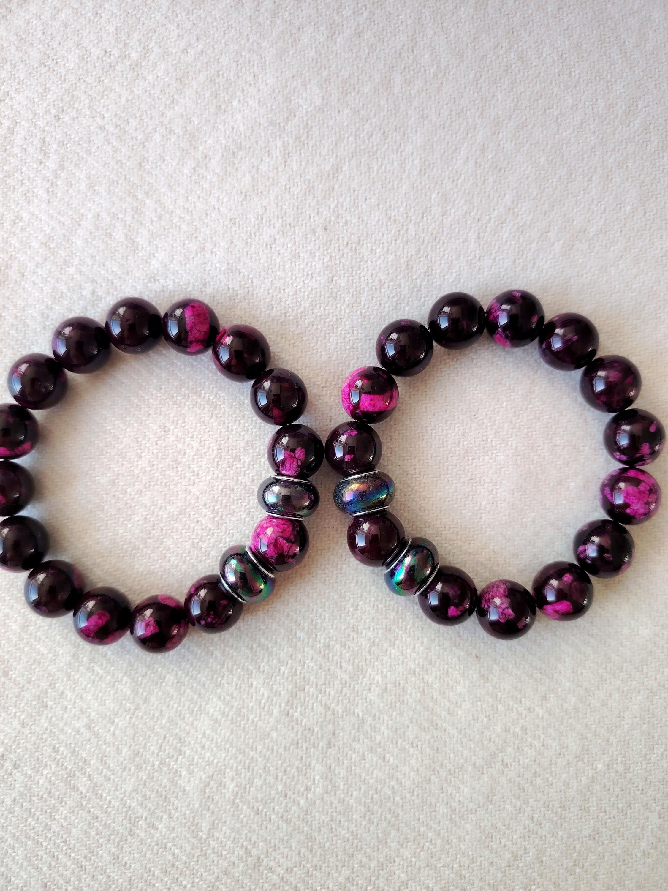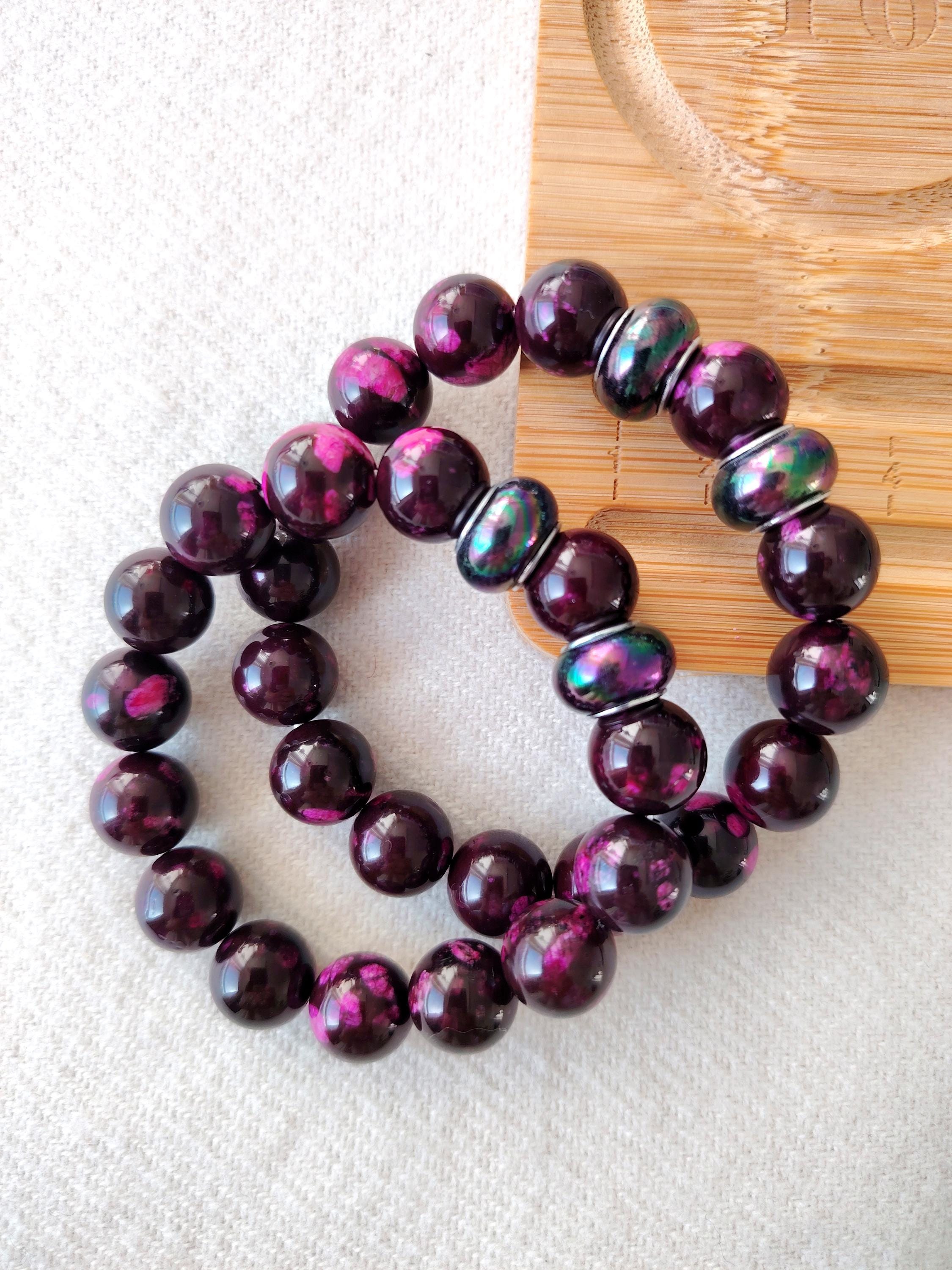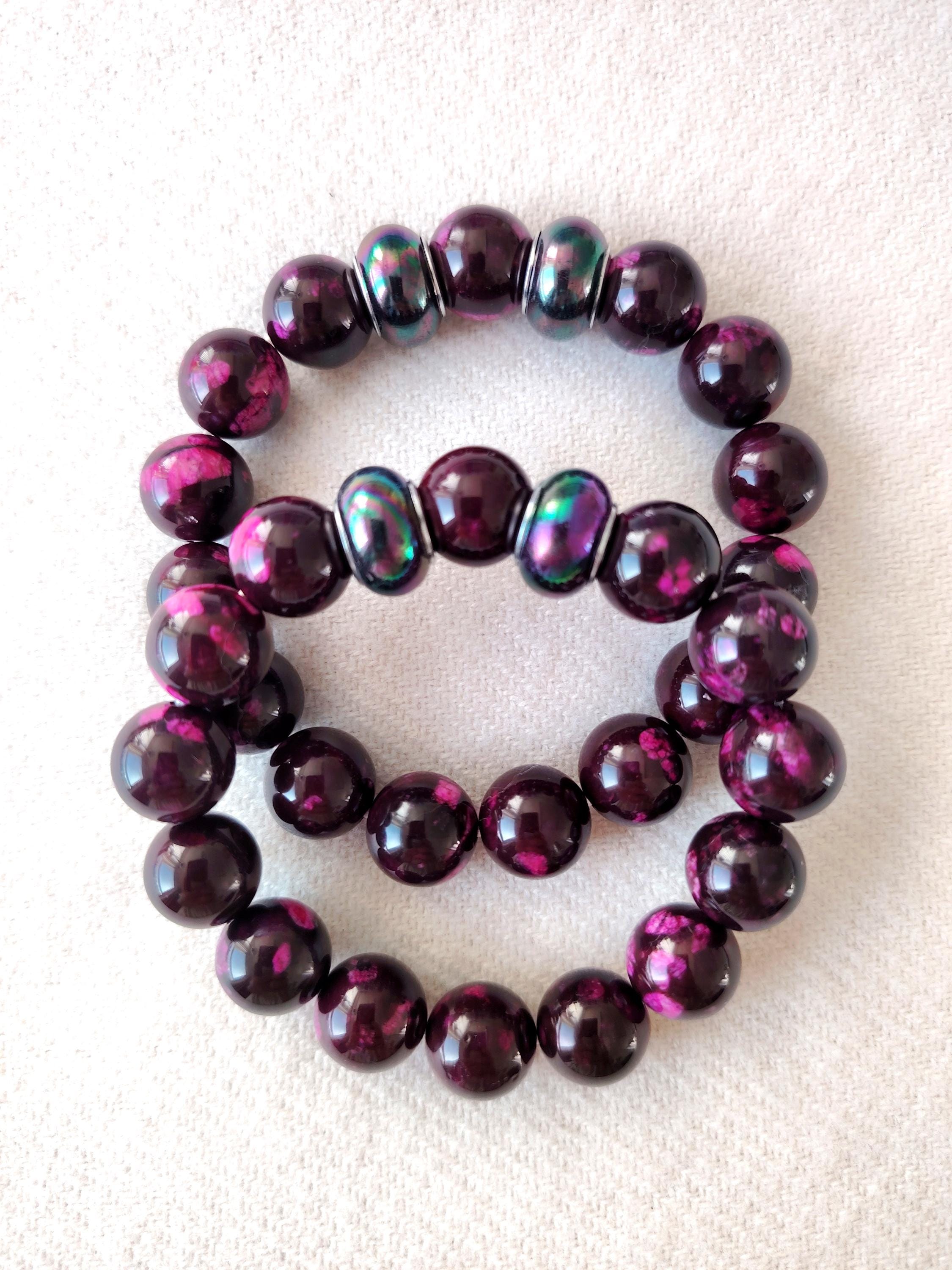 Handmade Purple-Red Agate Beaded Bracelet, 12mm Natural Stone, Couple's Jewelry