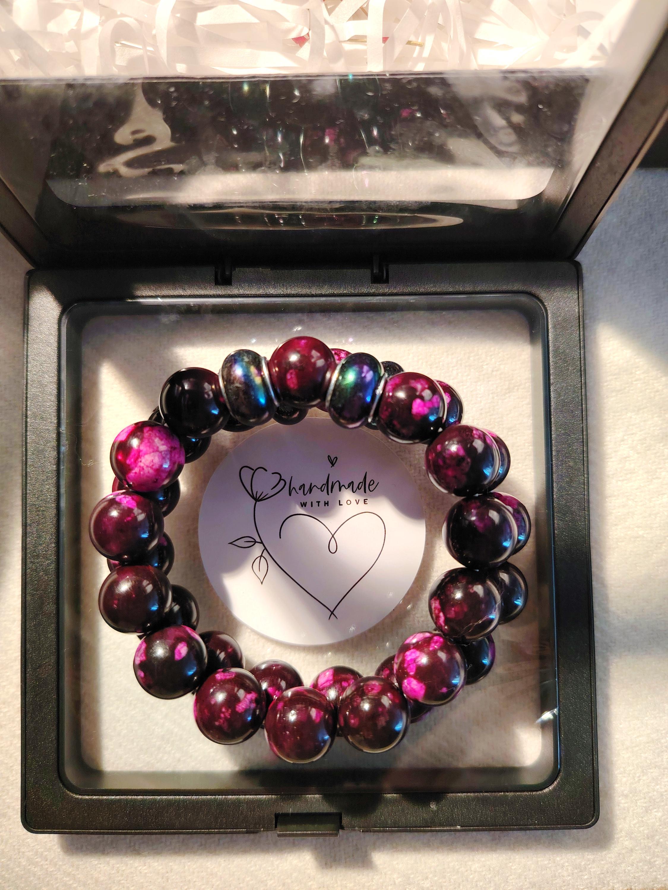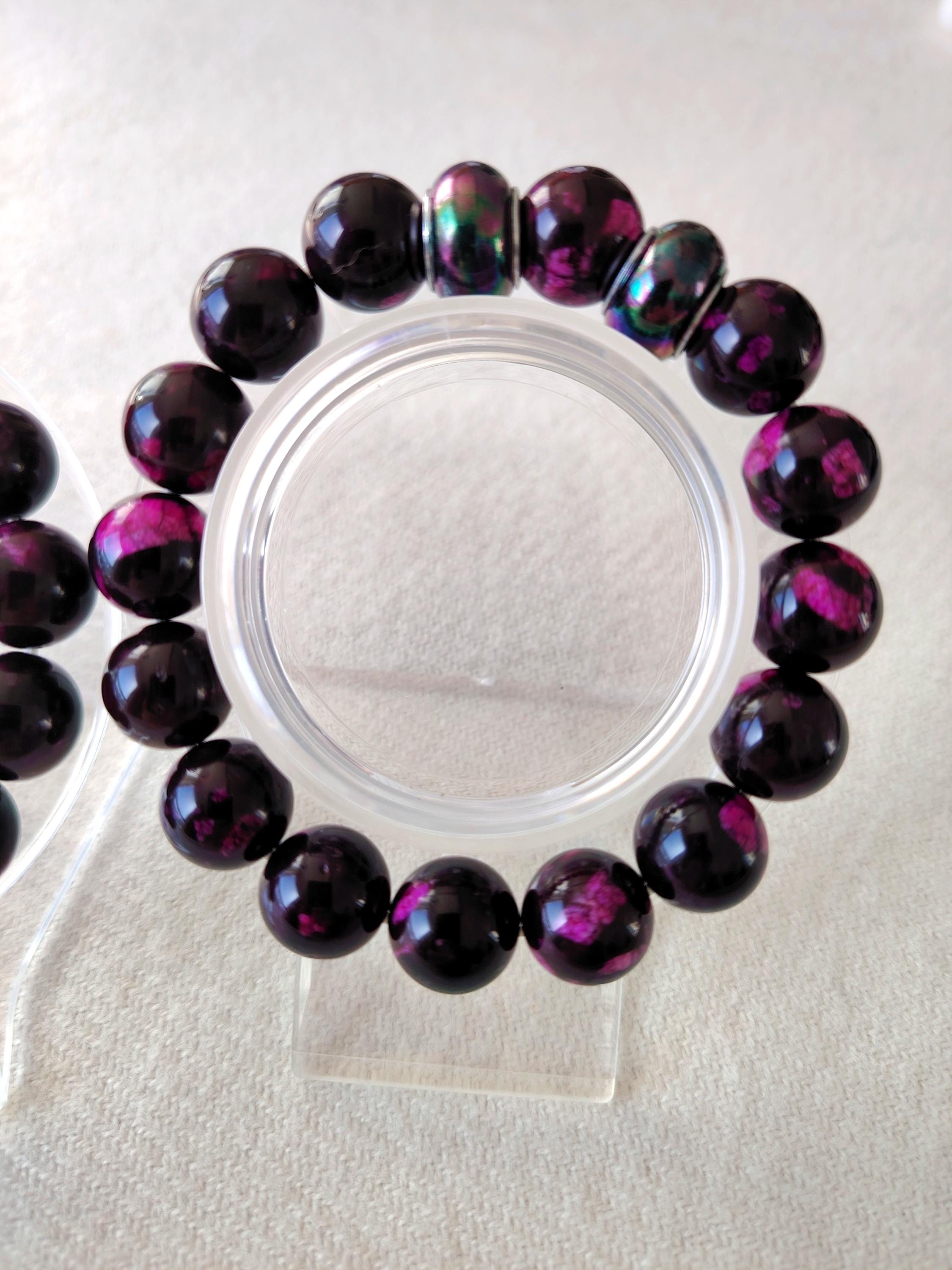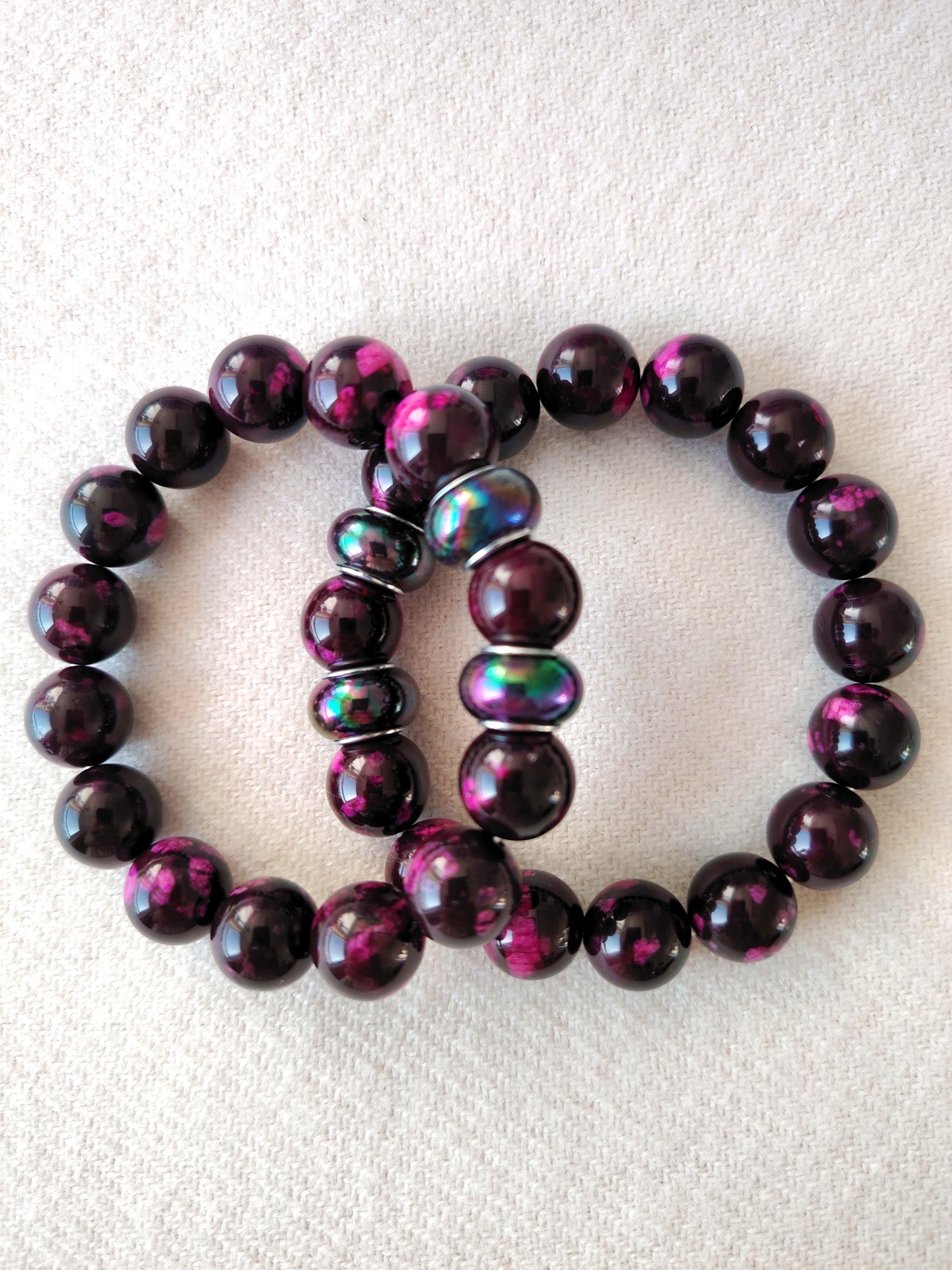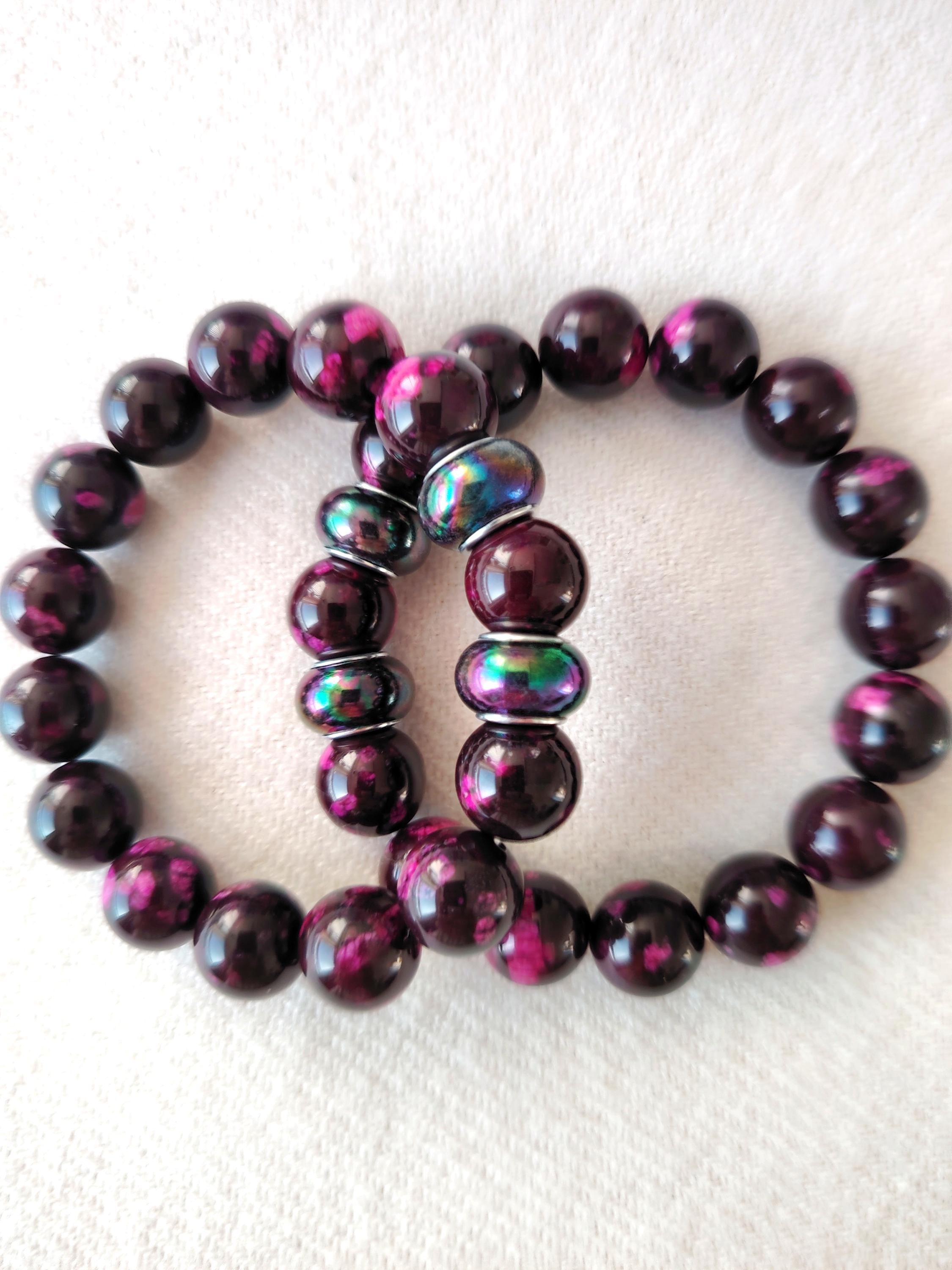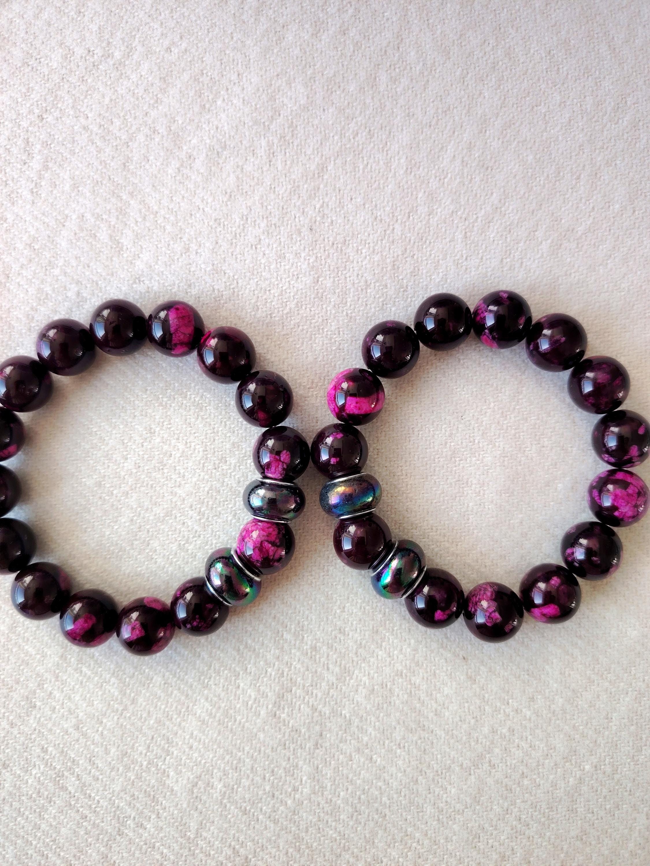 Handmade Purple-Red Agate Beaded Bracelet, 12mm Natural Stone, Couple's Jewelry