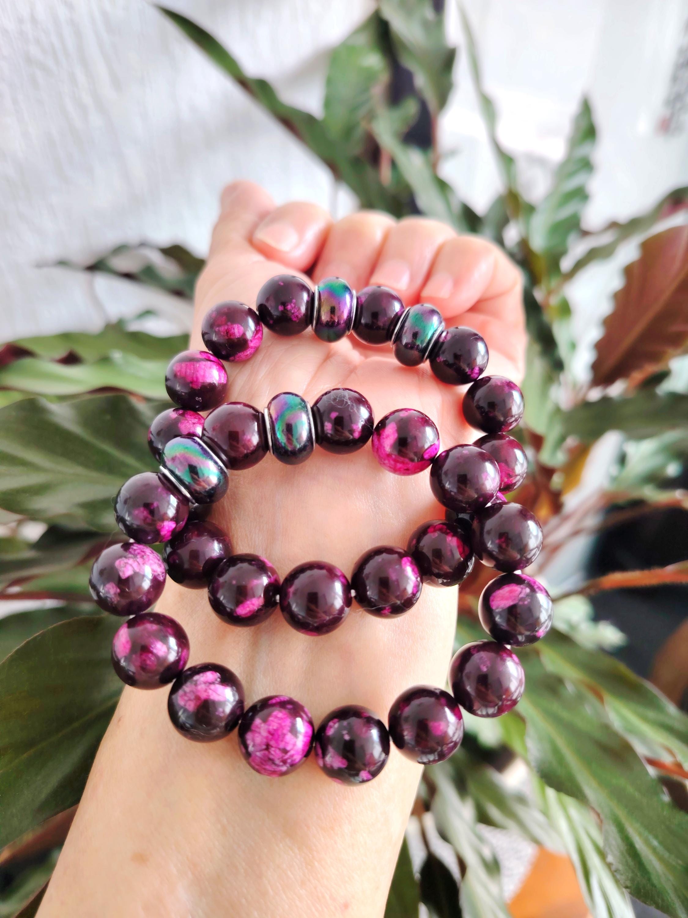 Product Material: Natural purplish-red agate, strong elastic cord;